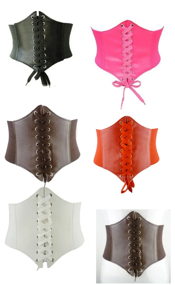 Women Punk PU Leather Corset Top Elastic High Waist Extra Wide Belt Slimming Body Shaper Female Fashion Cummerbunds