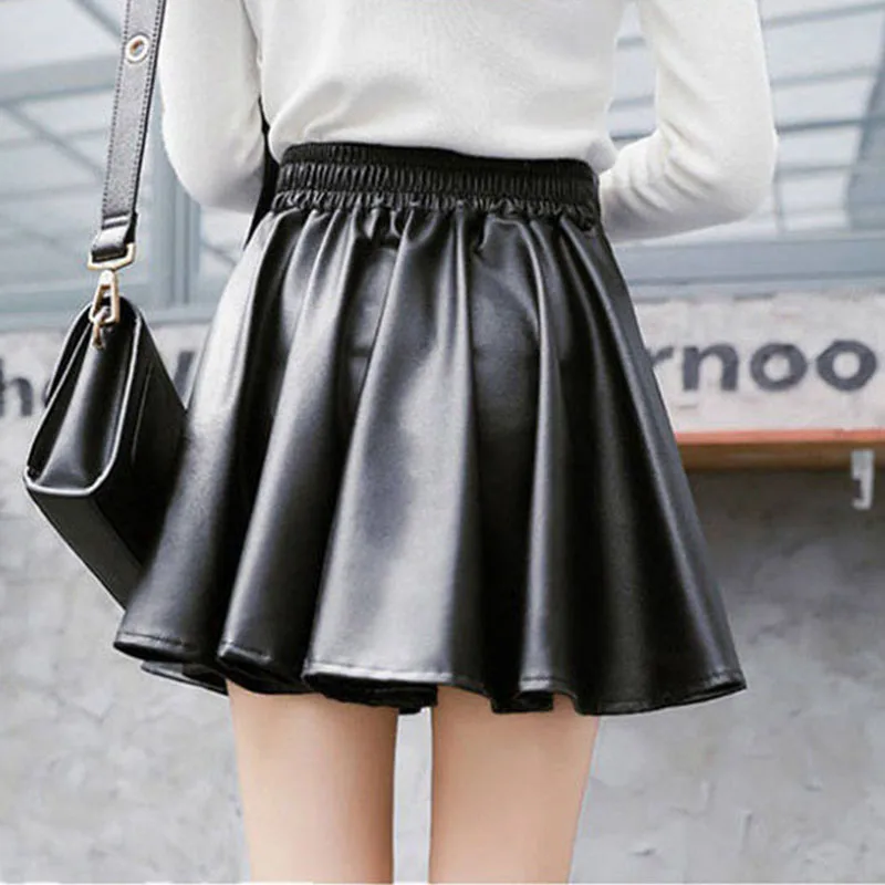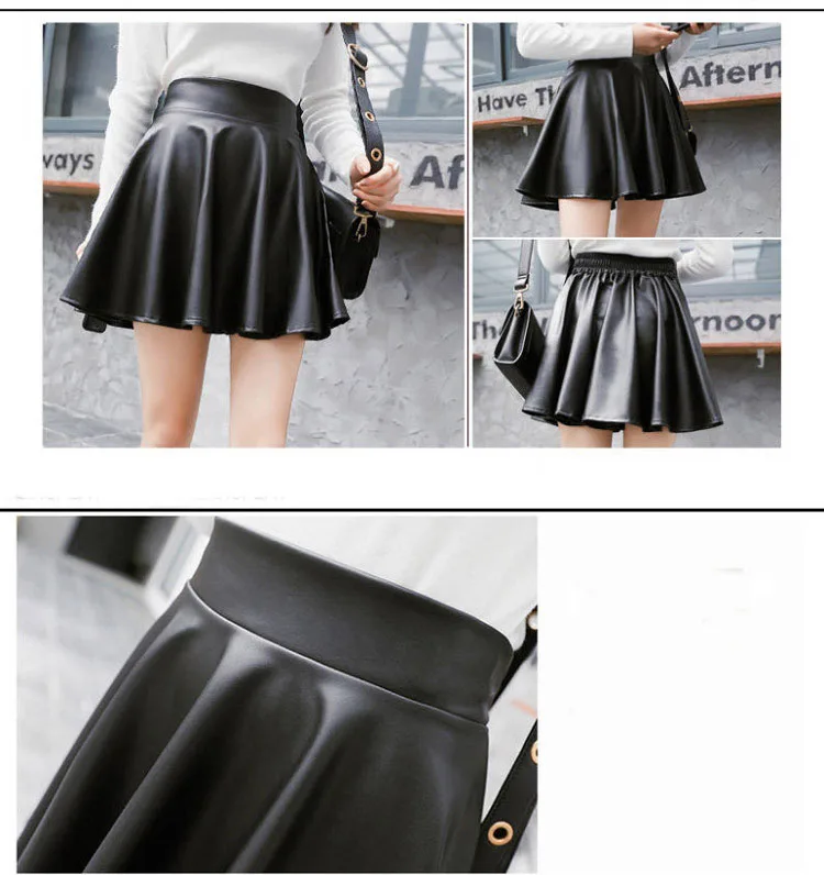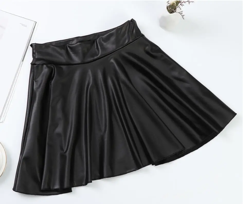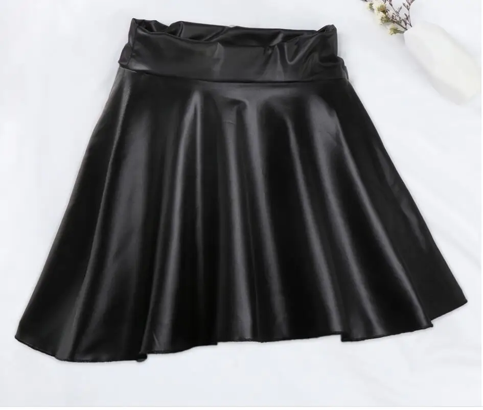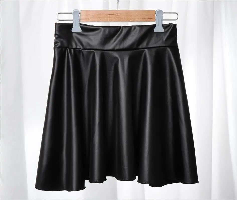 Women Sexy Faux Leather Skirts High Waist Elastic Mini Short Skirt Multi Purpose For Skater Work Nightclub Knee-Length Skirts