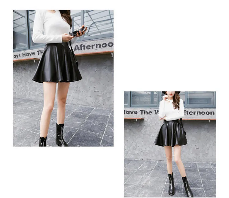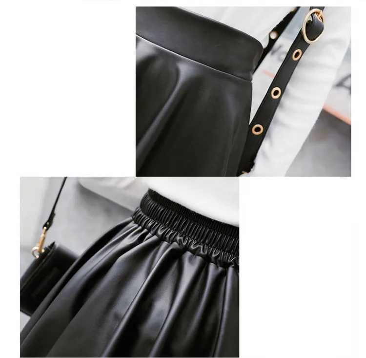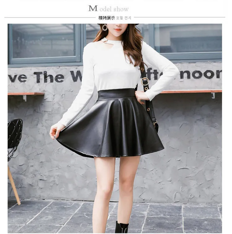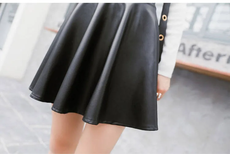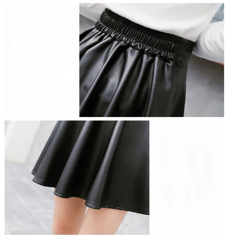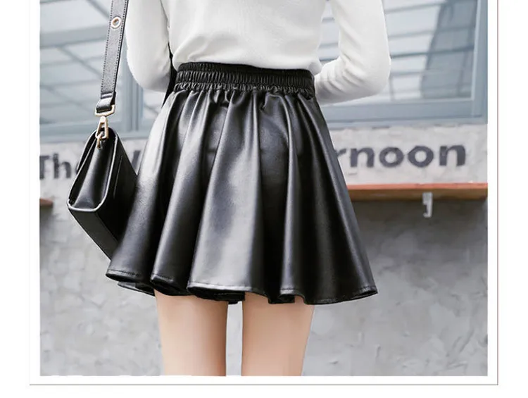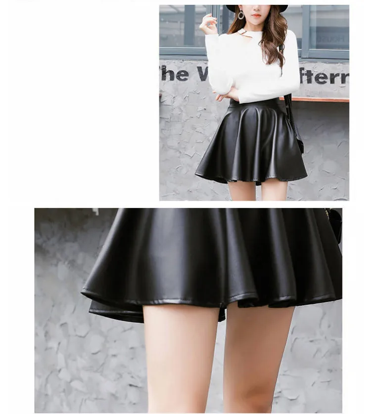 Women Sexy Faux Leather Skirts High Waist Elastic Mini Short Skirt Multi Purpose For Skater Work Nightclub Knee-Length Skirts