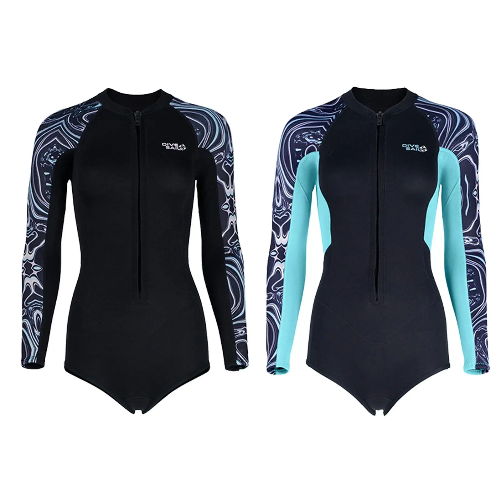 【Product Highlight】: This is a 2MM thermal wetsuit for women, designed with long sleeves and short pants. It’s suitable for diving, surfing, swimming, and other water activities.