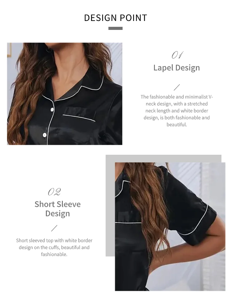 • Premium Silk Satin Material :Crafted from high-quality silk satin, these pajamas offer a soft and smooth touch, ensuring a comfortable sleep experience.