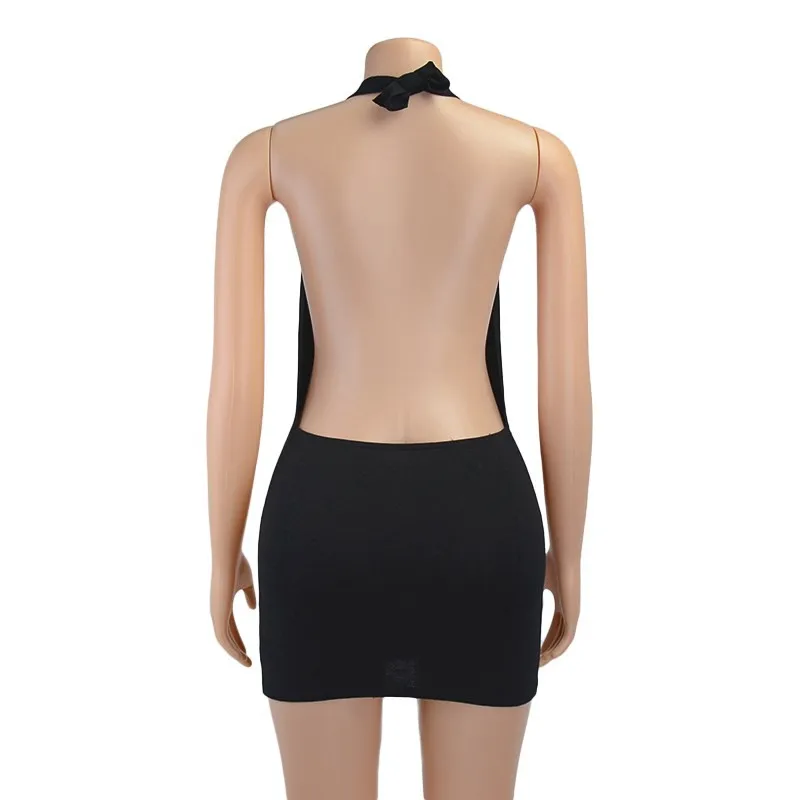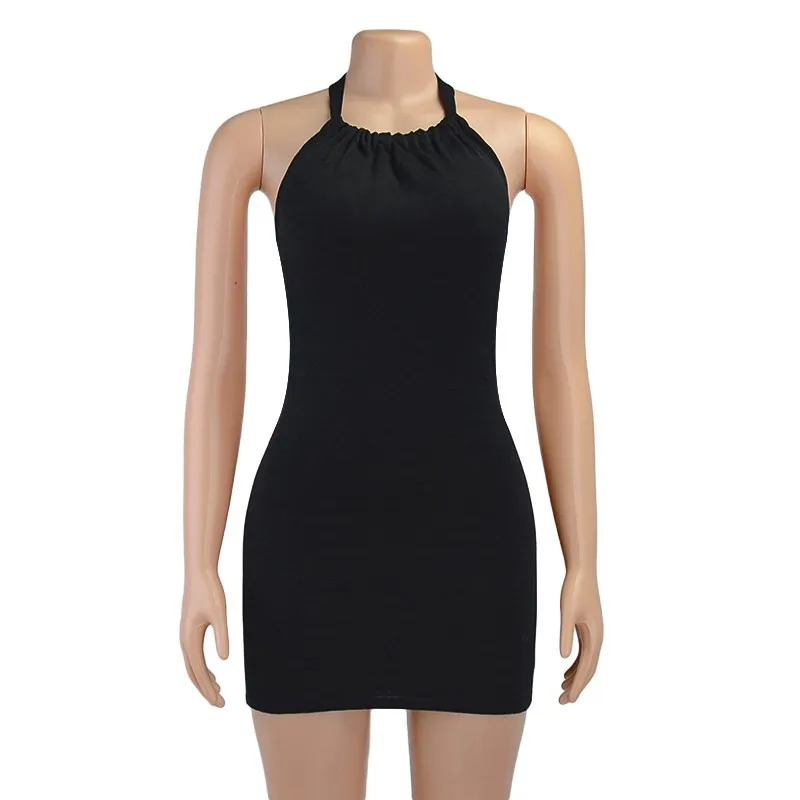 Women Sleeveless Backless Mini Skirt Dress 2023 Y2K Summer Bodycon Hang Neck Elegant Sexy Outfits Ladies Party Club Sundress