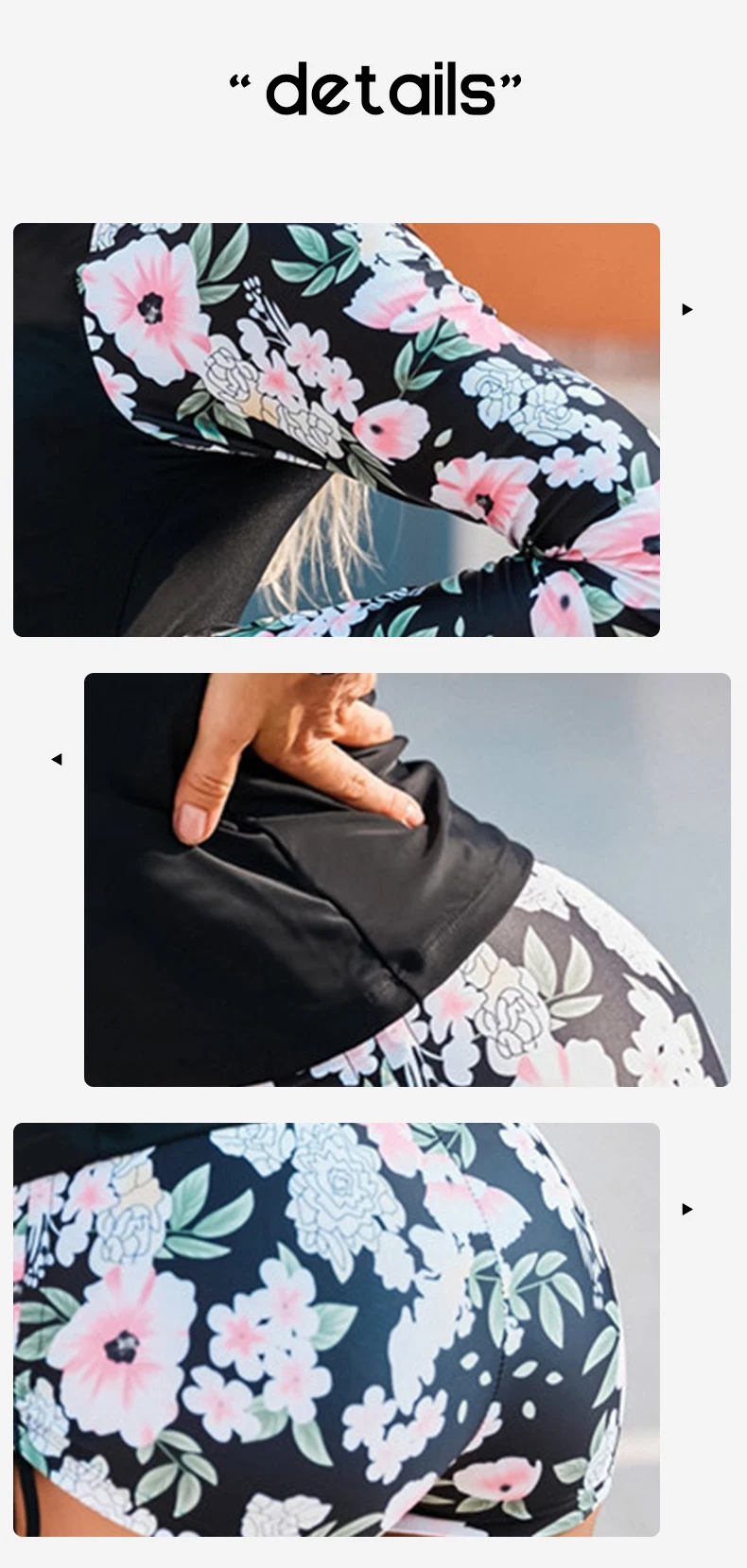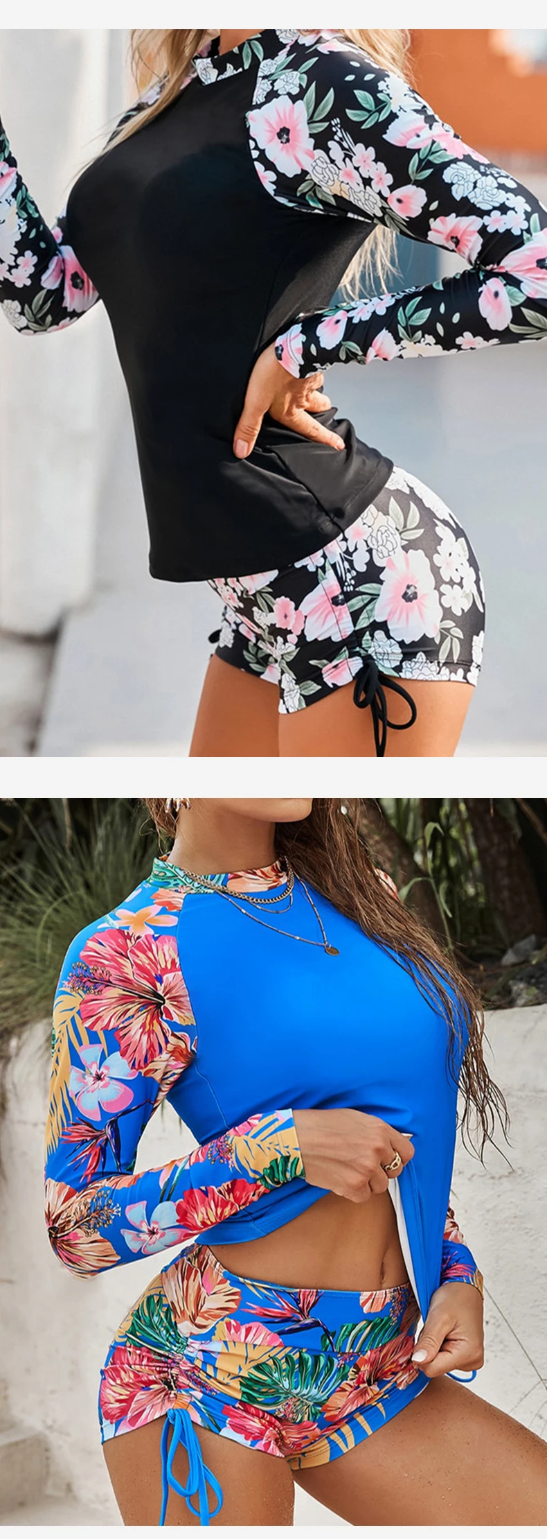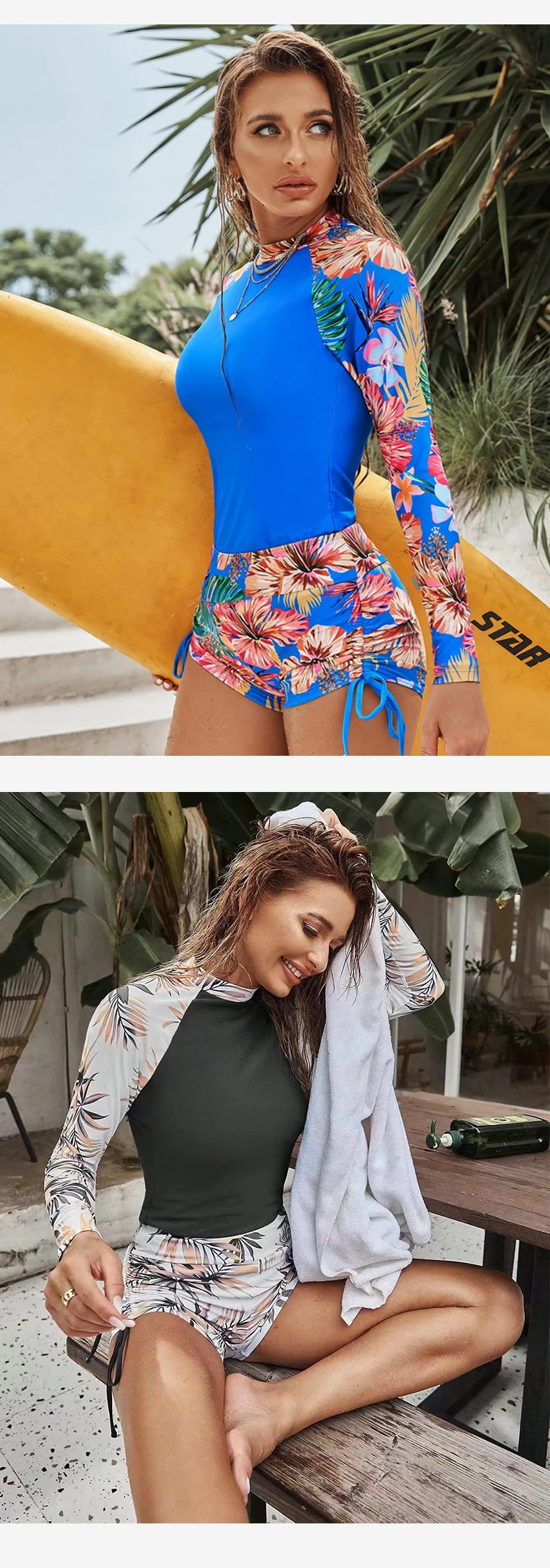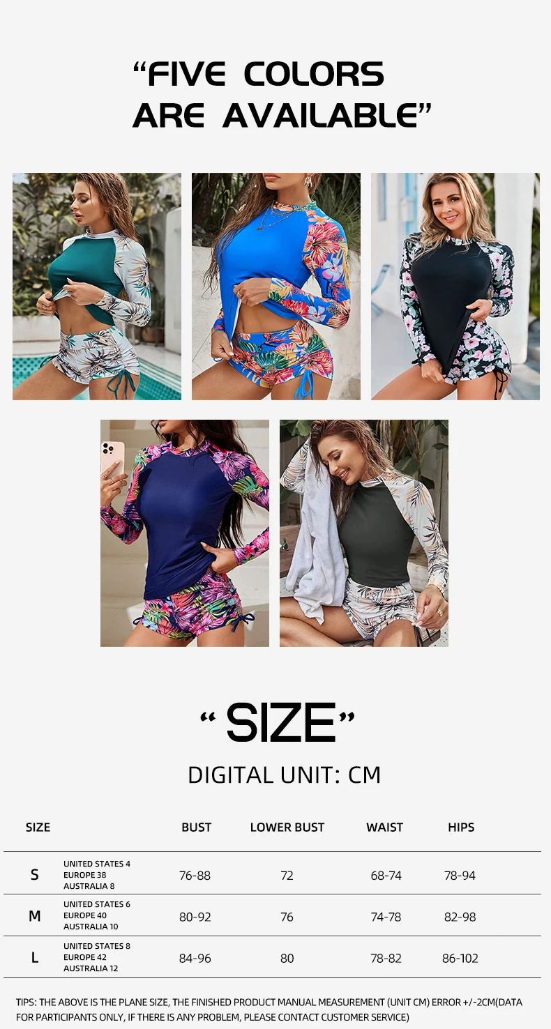 Women’s Conservative Swimsuit 2-Piece Swim Beach Bathing Suit Set Patchwork Long-Sleeved Split Bikini Swimsuit Sets