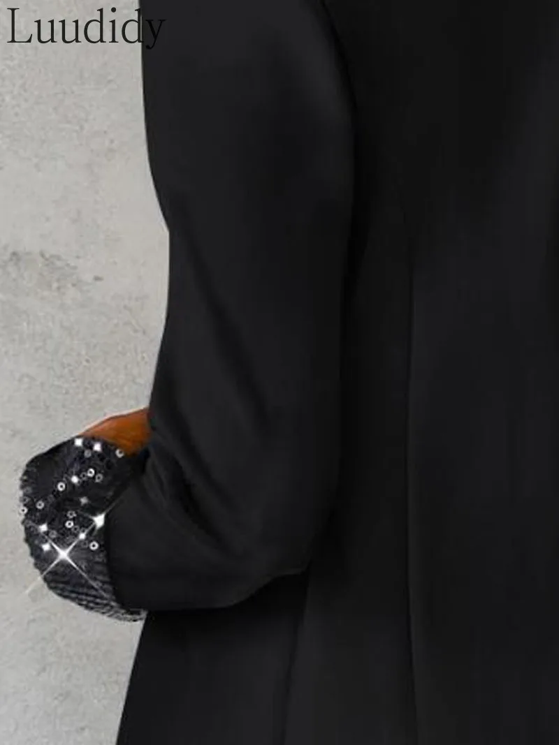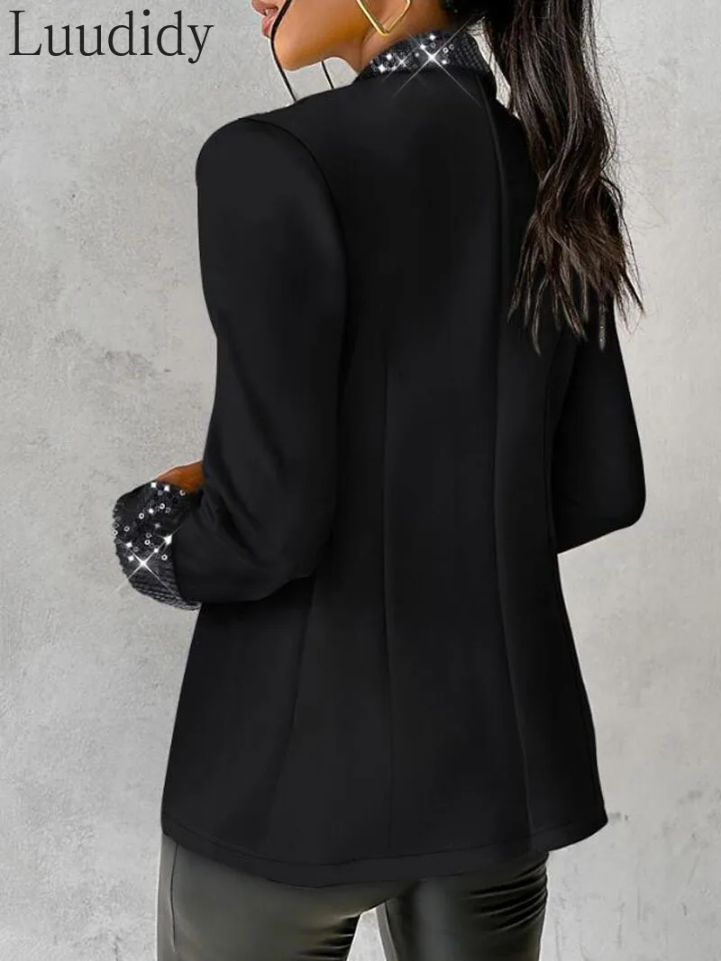 Women’S Elegant Casual Solid Color Long Sleeve Notched Collar Sequin Decor Blazer Coat