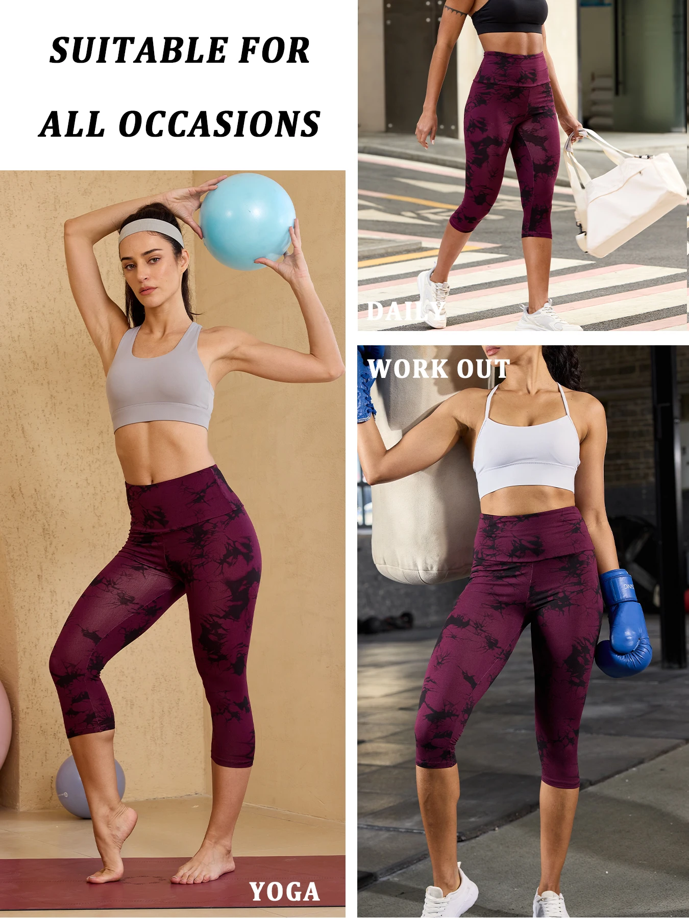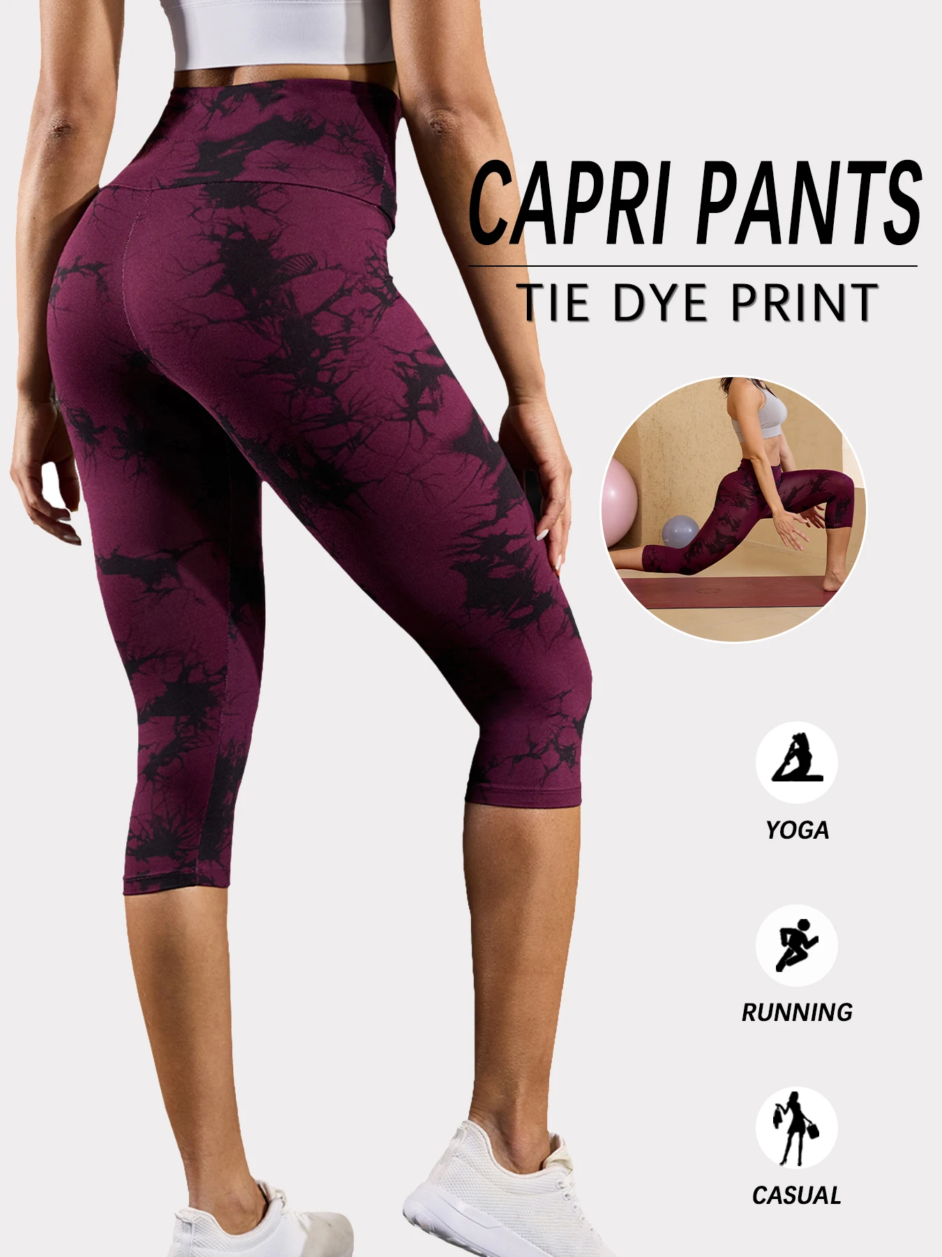 Women’s High Waisted Capri Pants Super Soft Tummy Control No See Through Workout Yoga Running Athletic Gym Leggings