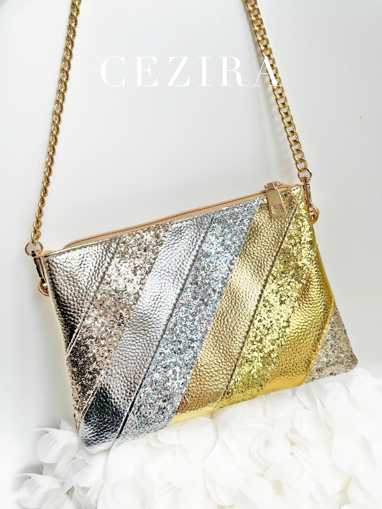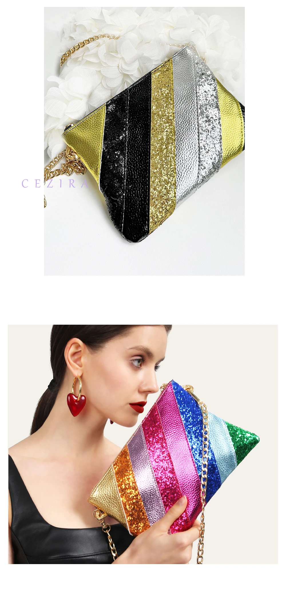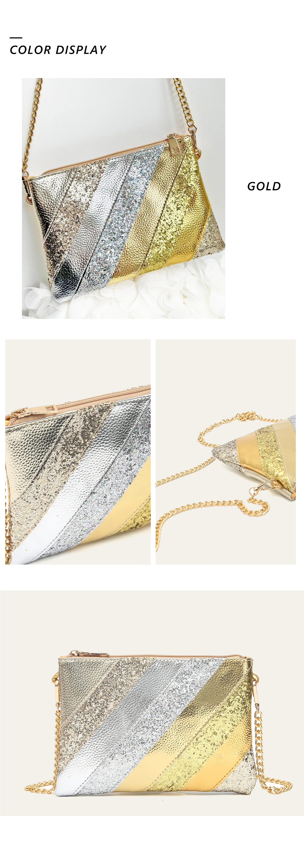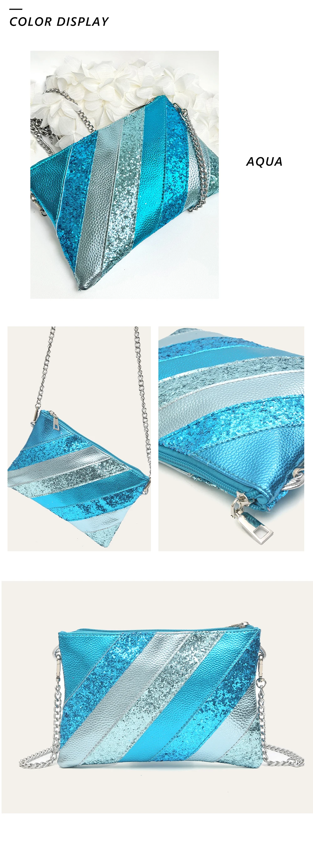 1 review for Women’s Metallic PU Leather Patchwork Clutch Bag Fashion Dazzling Shiny Sequins Metal Chain Shoulder Cross body Handbag Party