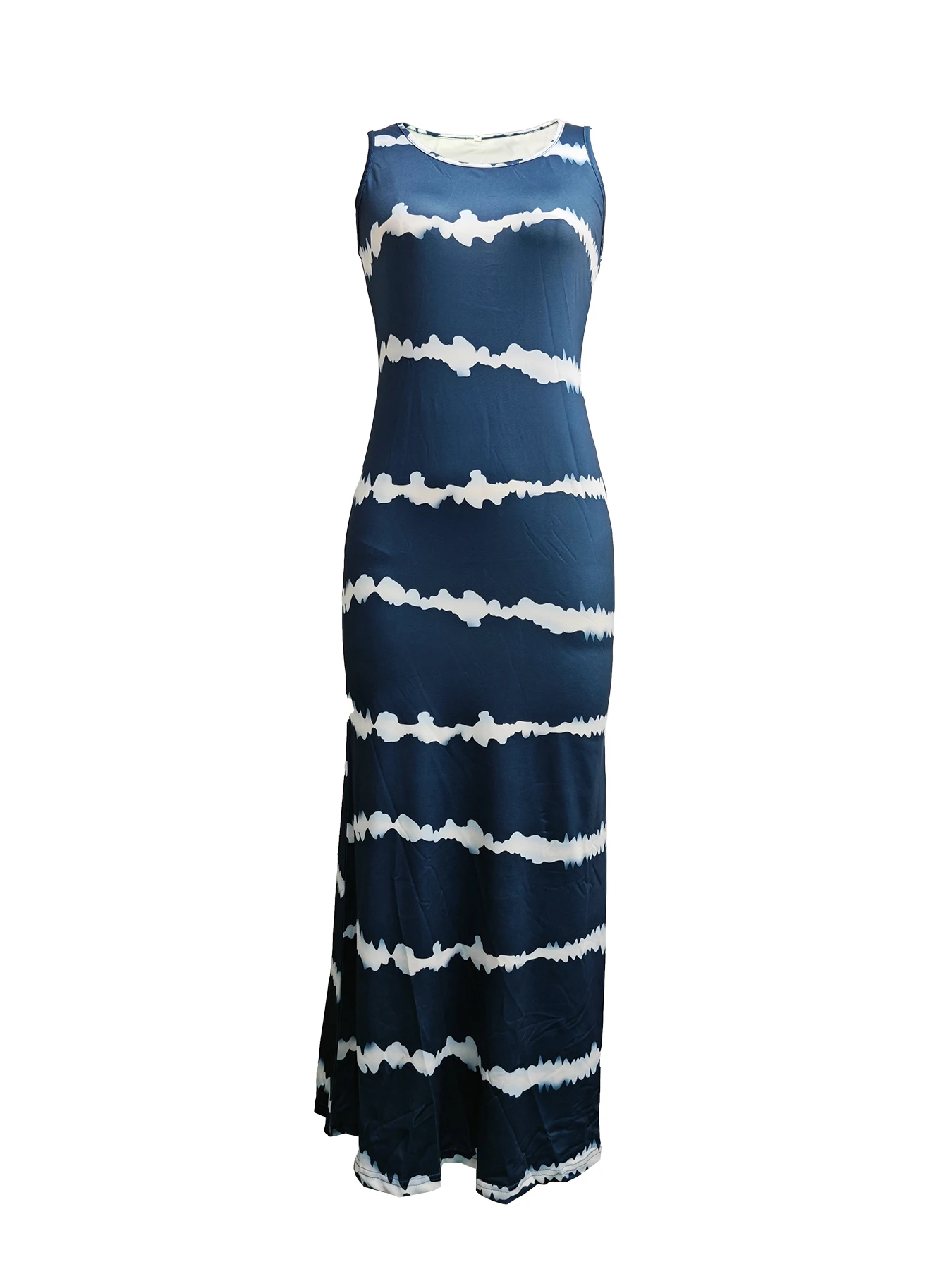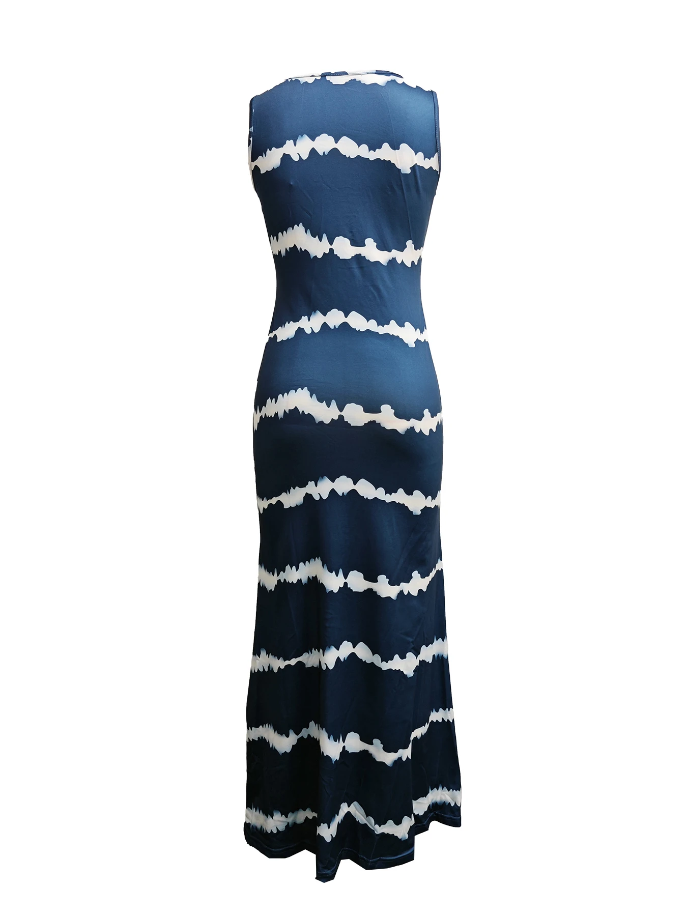 1 review for Women’s Navy Blue Tie Dye Striped Maxi Dress with Sleeveless Bateau Neck and Flowy Long Skirt for Summer Beach Vacation