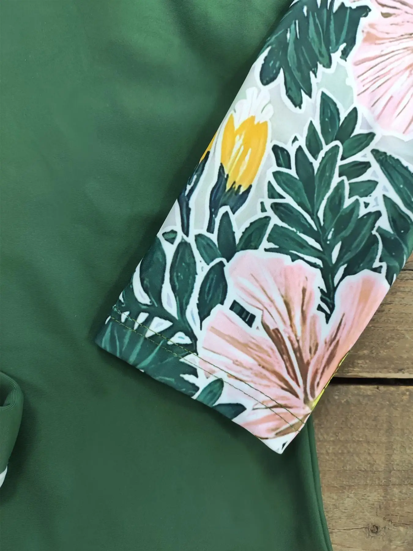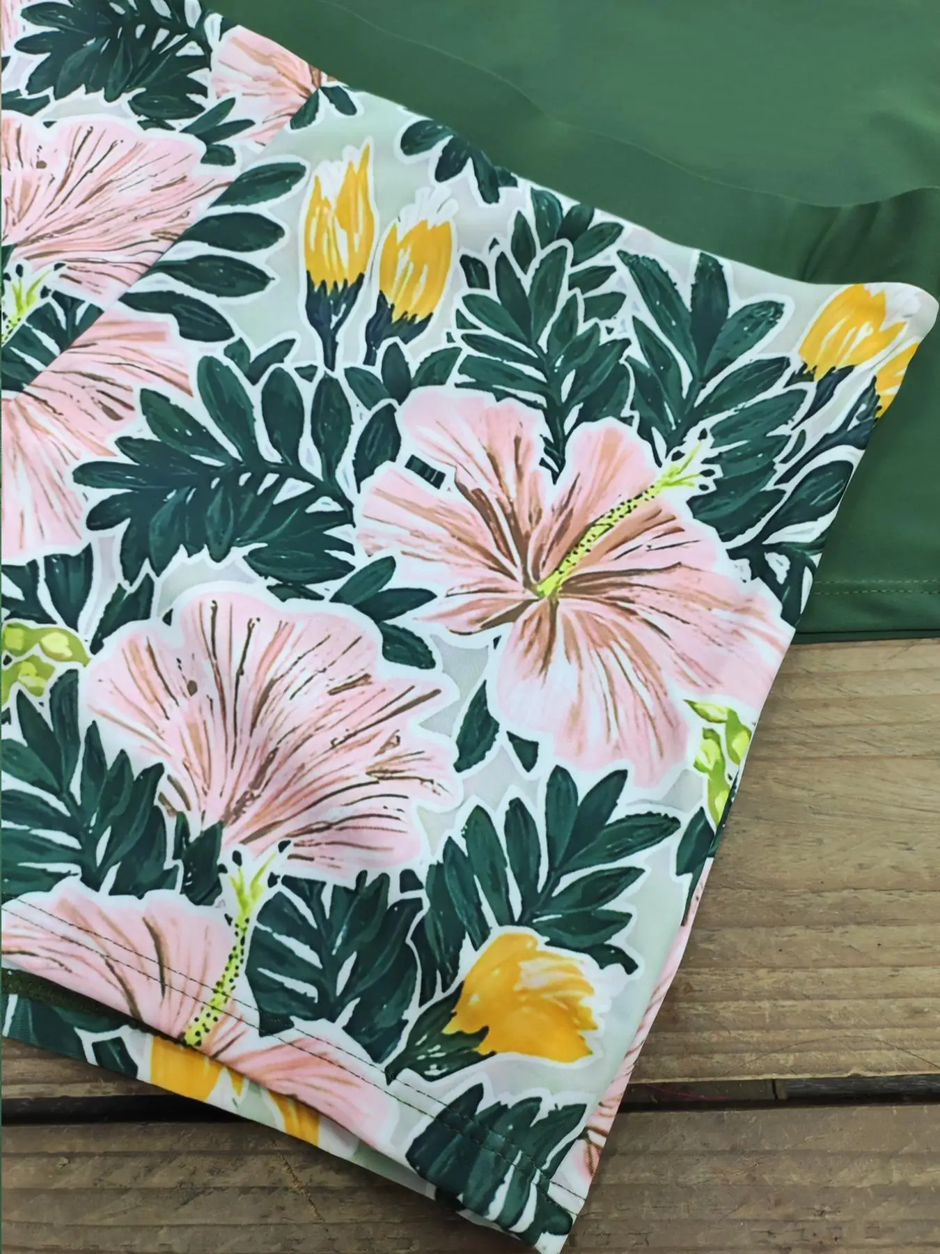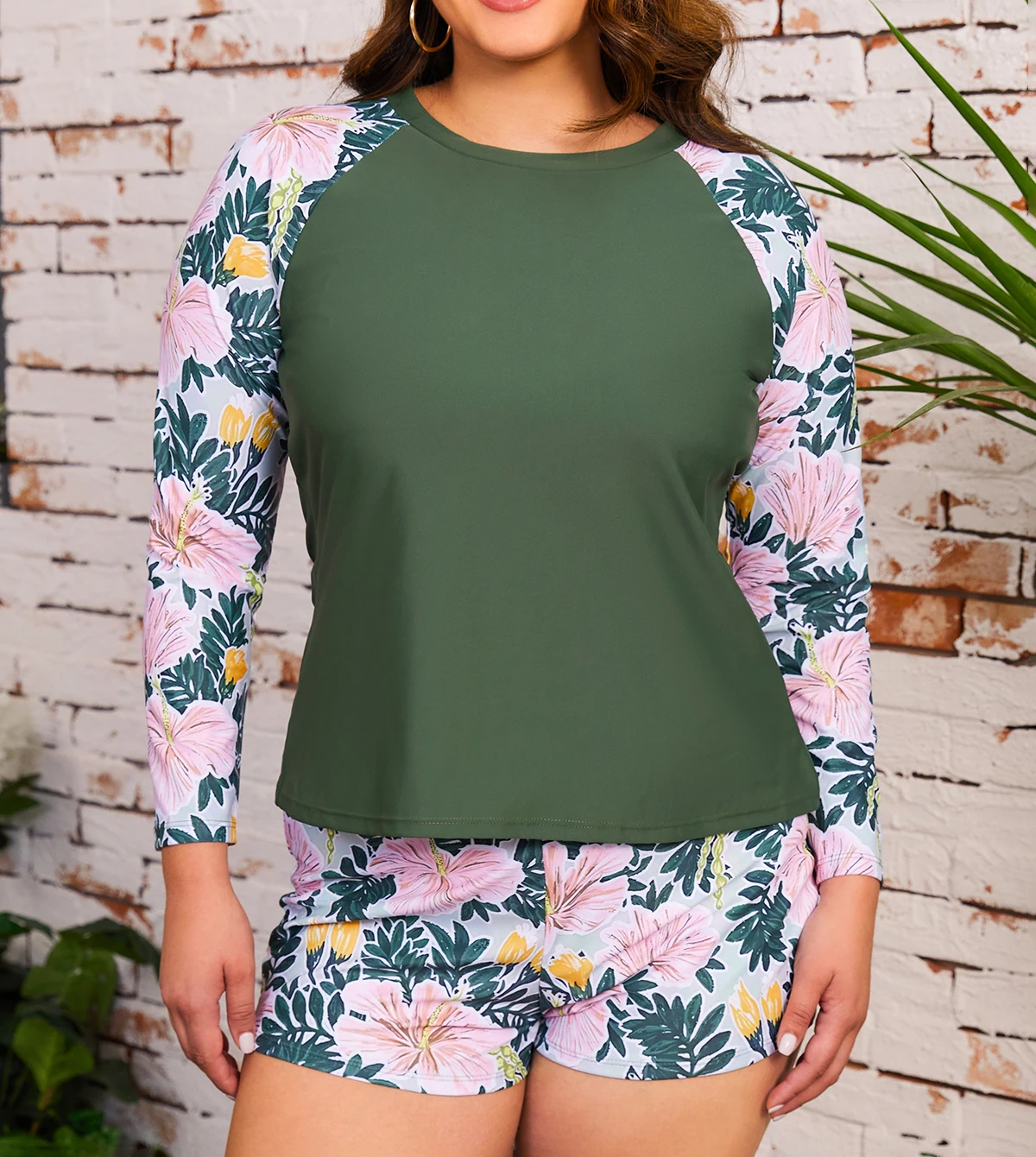 Women’s Sexy Long Sleeves Tankini Swimwear, Solid Printed Boxers Swimsuit, Slightly Fat Bathing Suit, Beachwear, Plus Size,2024