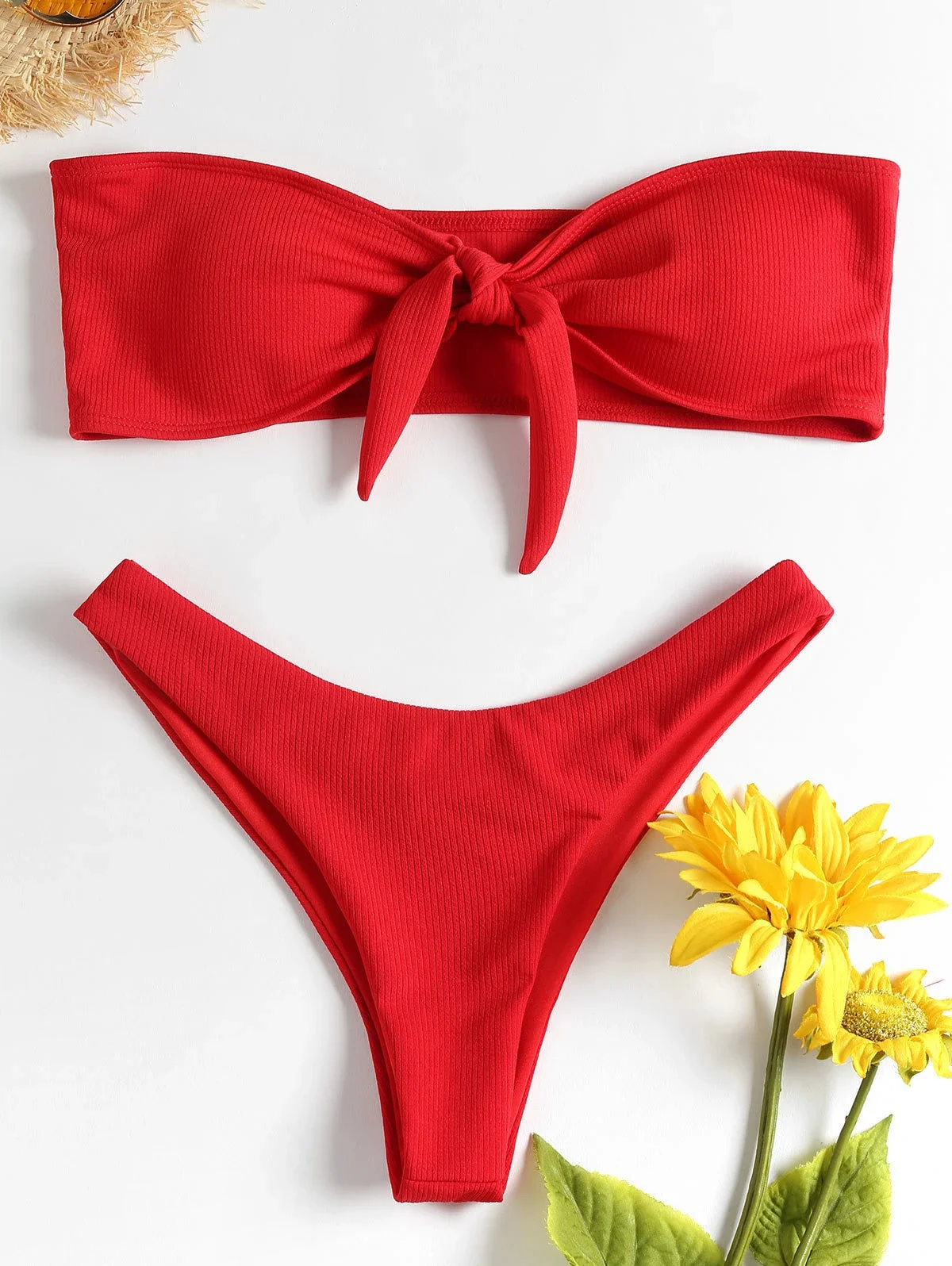 Women’s Sexy Tube Top Bow Split Bikini Swimsuit Swim trunks Swimming Suit For Women Biquini Traje De Bano Pants Bikini Badeanzug