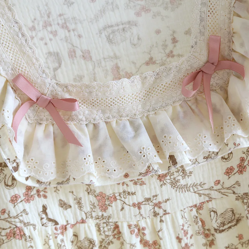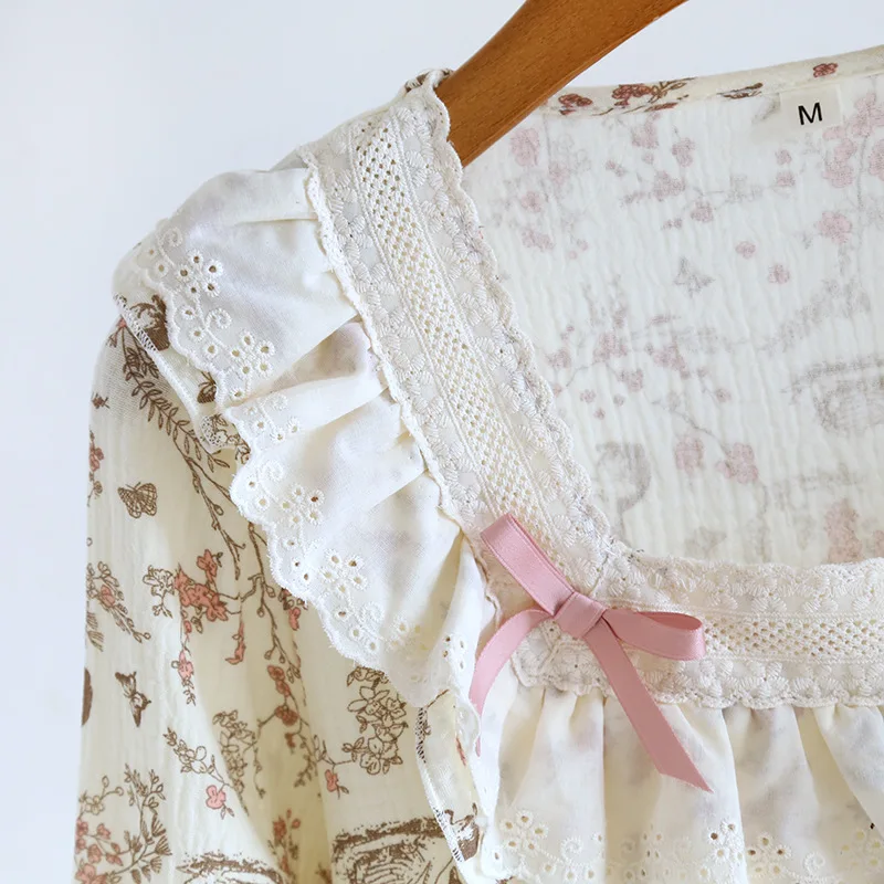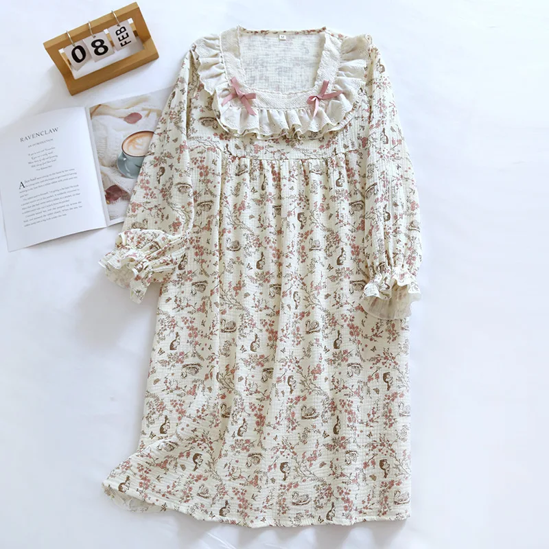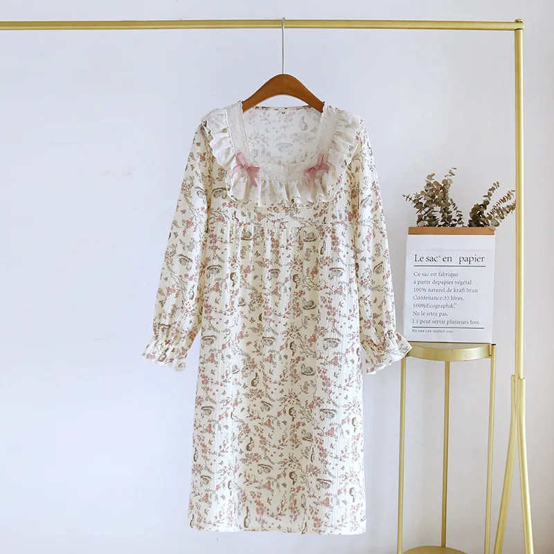 Women’s Sleep Cotton Night Dress Nighties For Womens Spring Summer Floral Print Nightgowns Princess Pajama Dress Nightwear