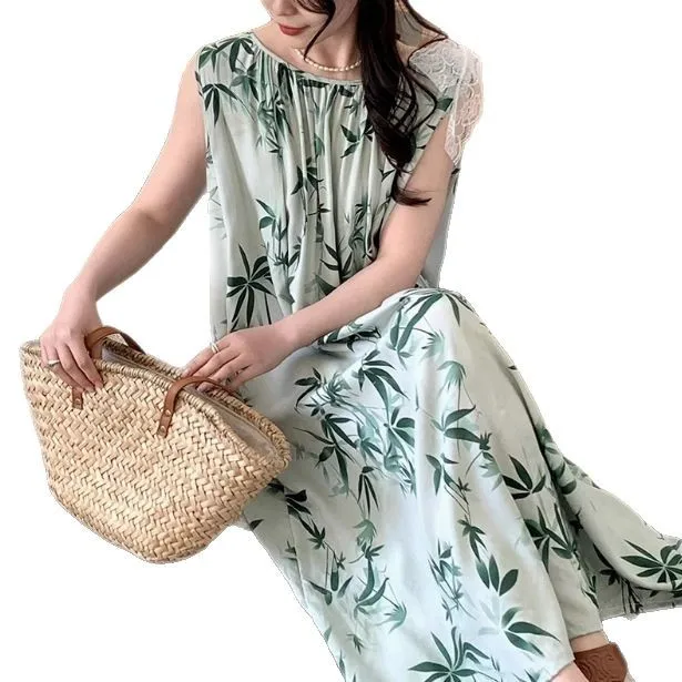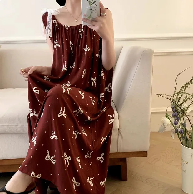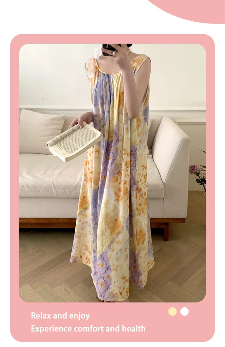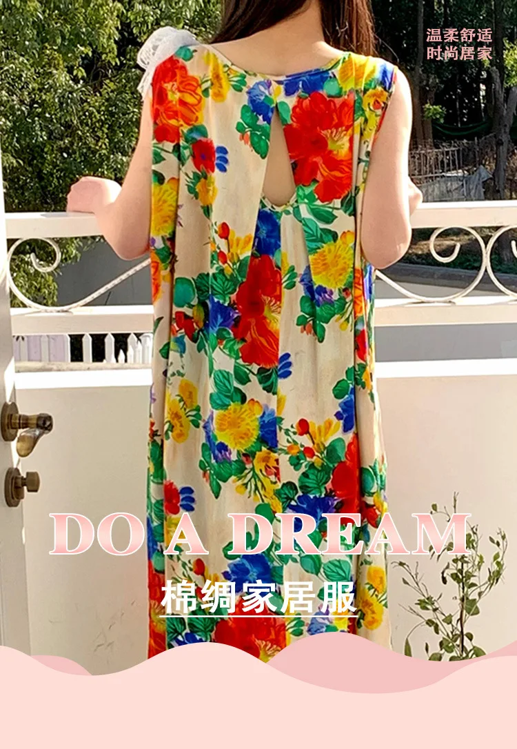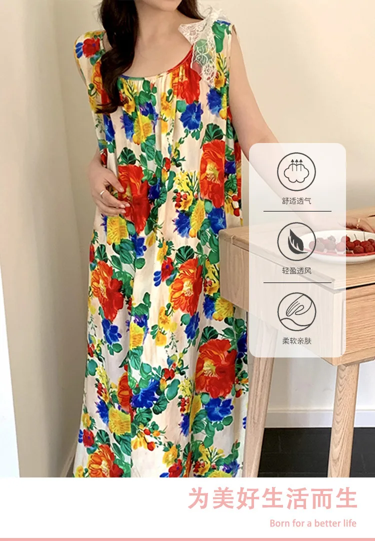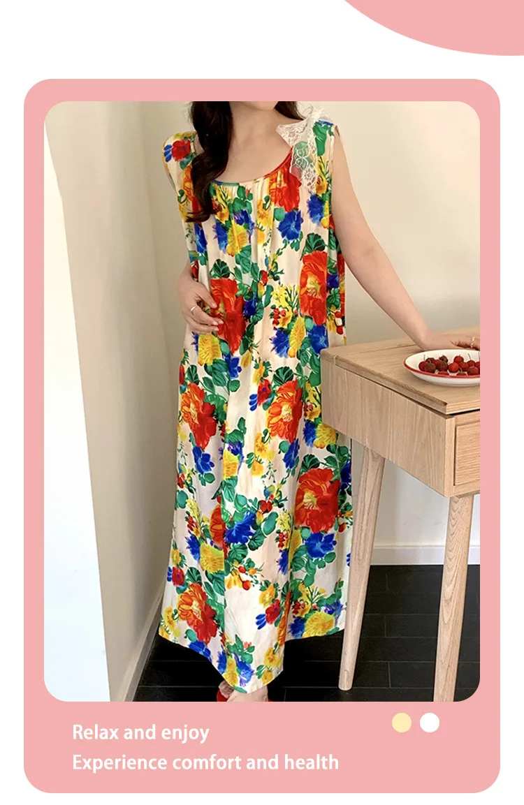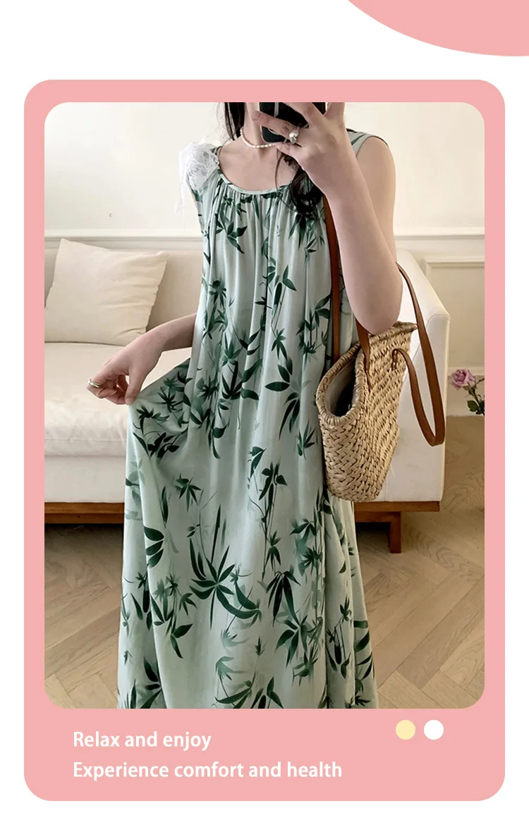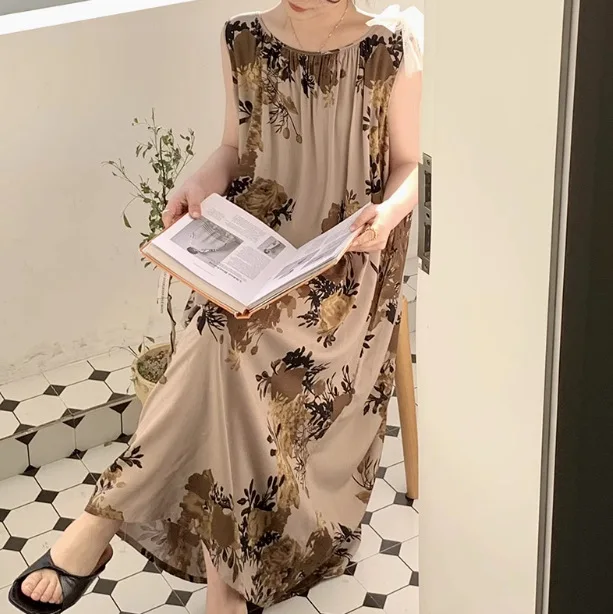 Women's Spring/Autumn Cotton Satin Nightgown – Summer Luxury Loungewear, Long Beach Dress, Trendy Elegant Homewear