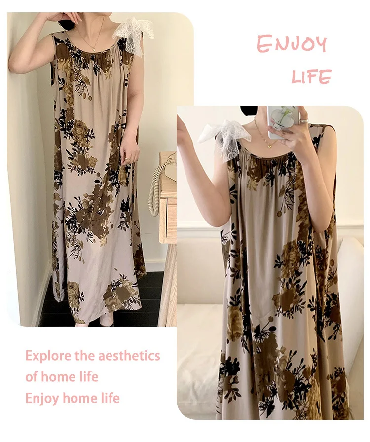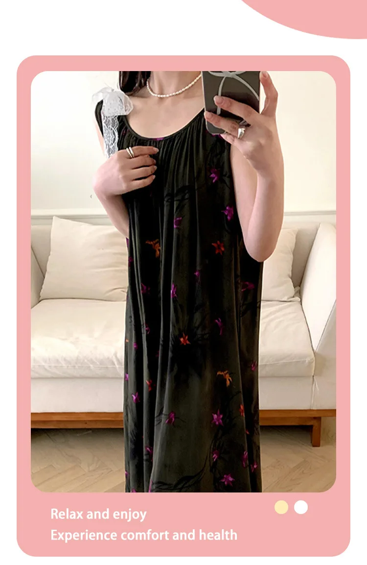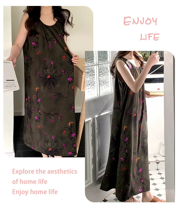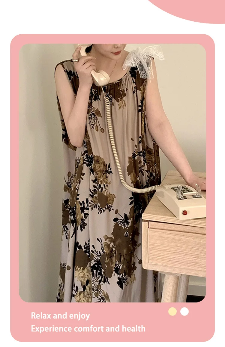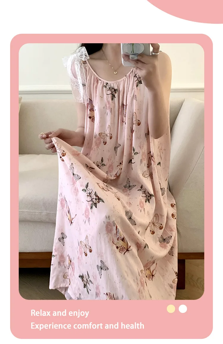 Women’s Spring/Autumn Cotton Satin Nightgown – Summer Luxury Loungewear, Long Beach Dress, Trendy Elegant Homewear