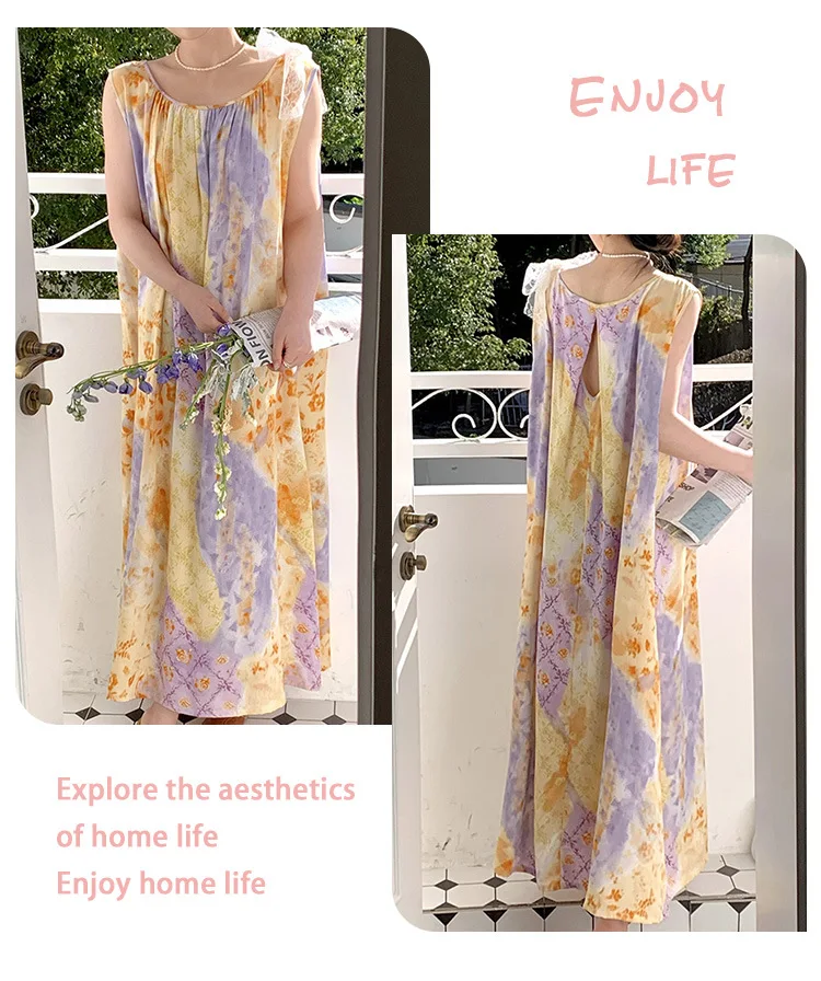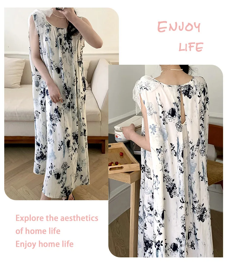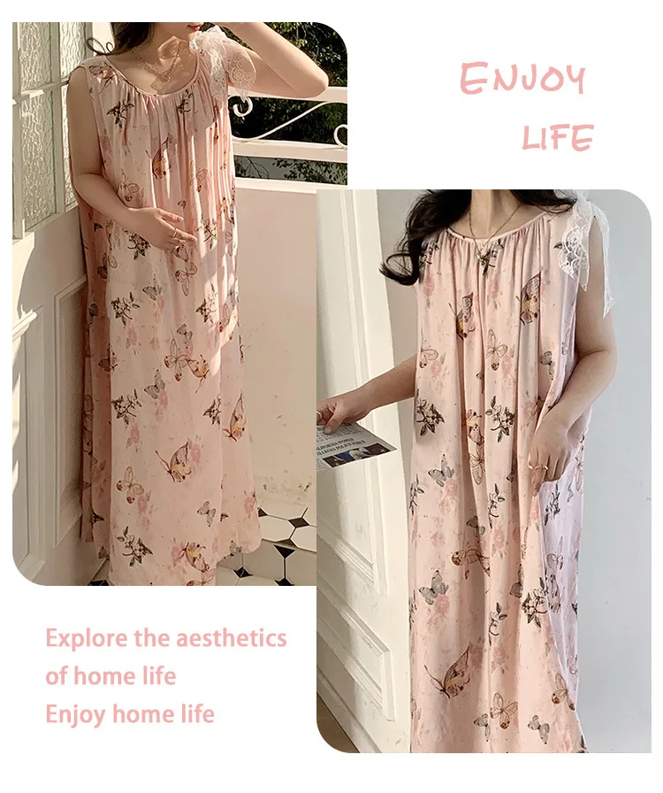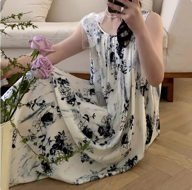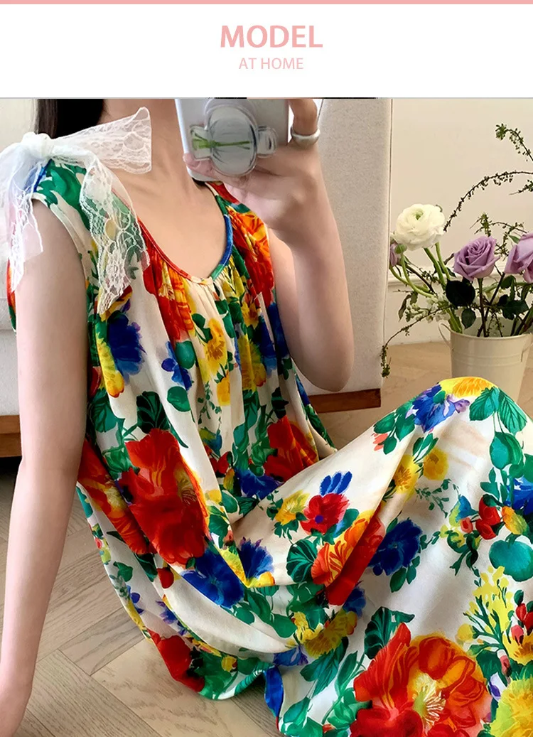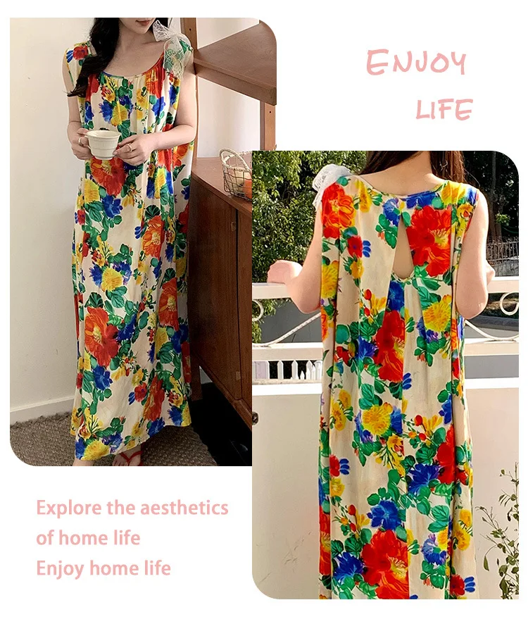 Women’s Spring/Autumn Cotton Satin Nightgown – Summer Luxury Loungewear, Long Beach Dress, Trendy Elegant Homewear