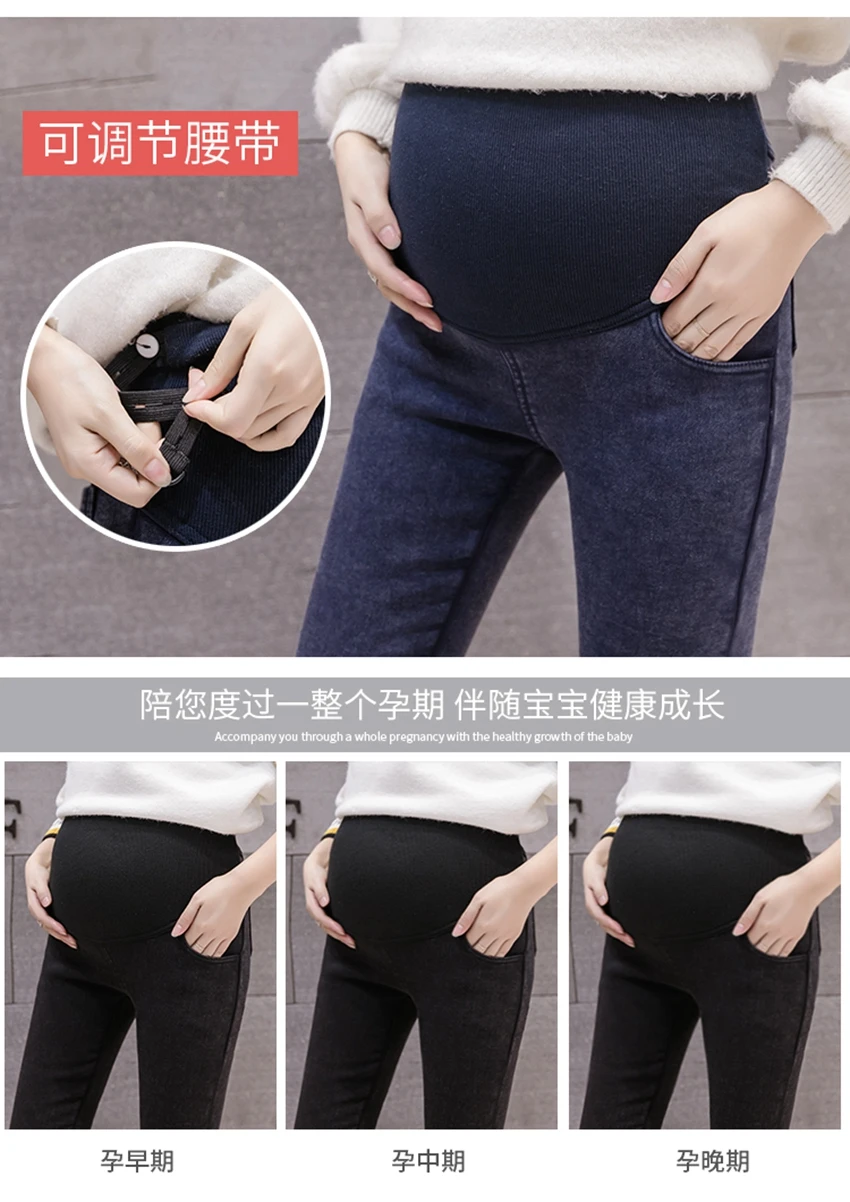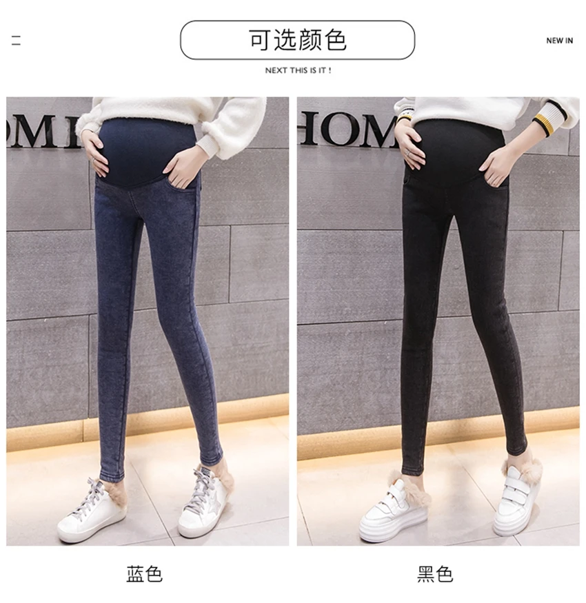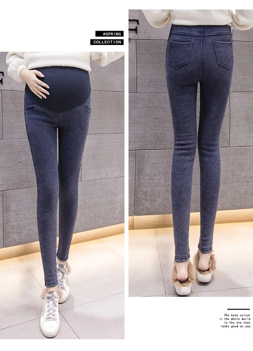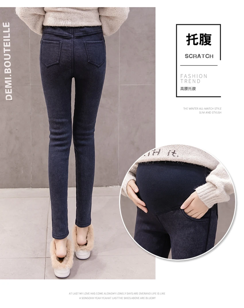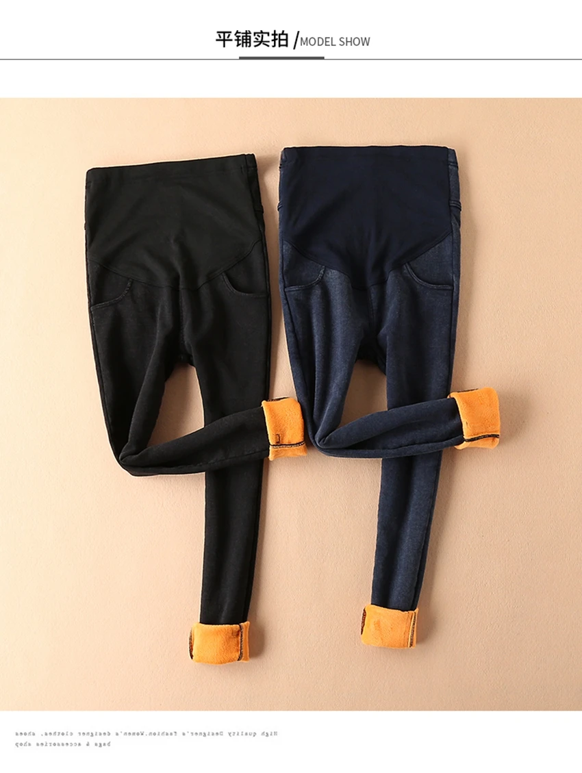Women’s Warm Thick Pregnancy Denim Pants Winter Fleece Maternity Jeans for Pregnant Women Plus Velvet Maternity Trousers