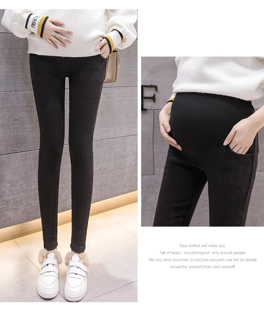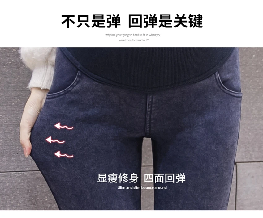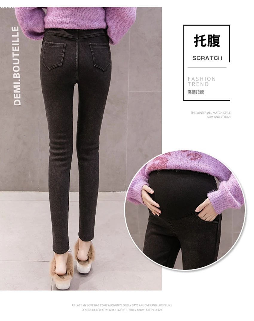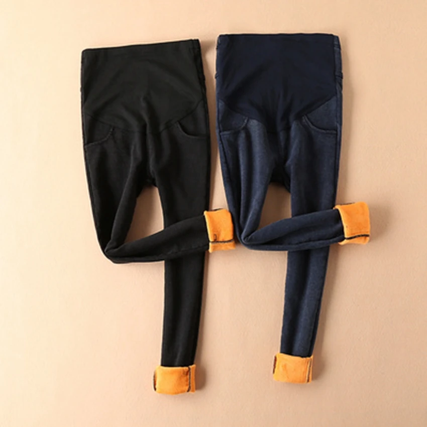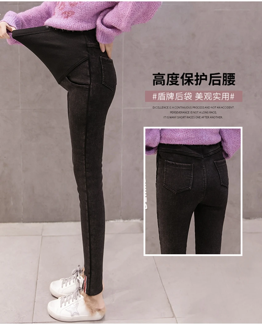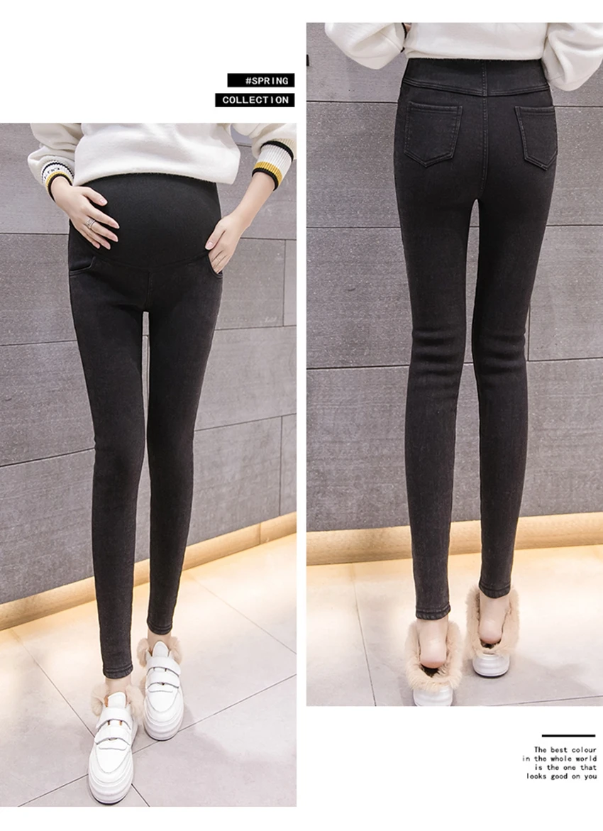 Women’s Warm Thick Pregnancy Denim Pants Winter Fleece Maternity Jeans for Pregnant Women Plus Velvet Maternity Trousers