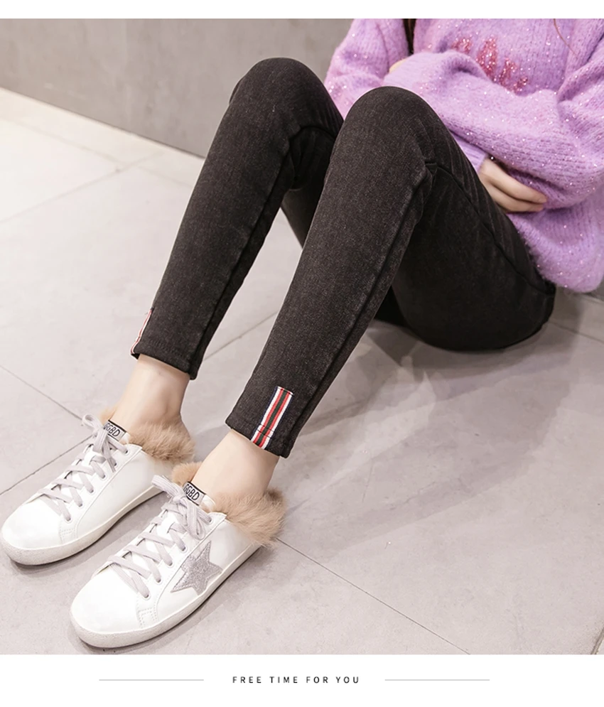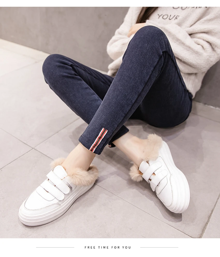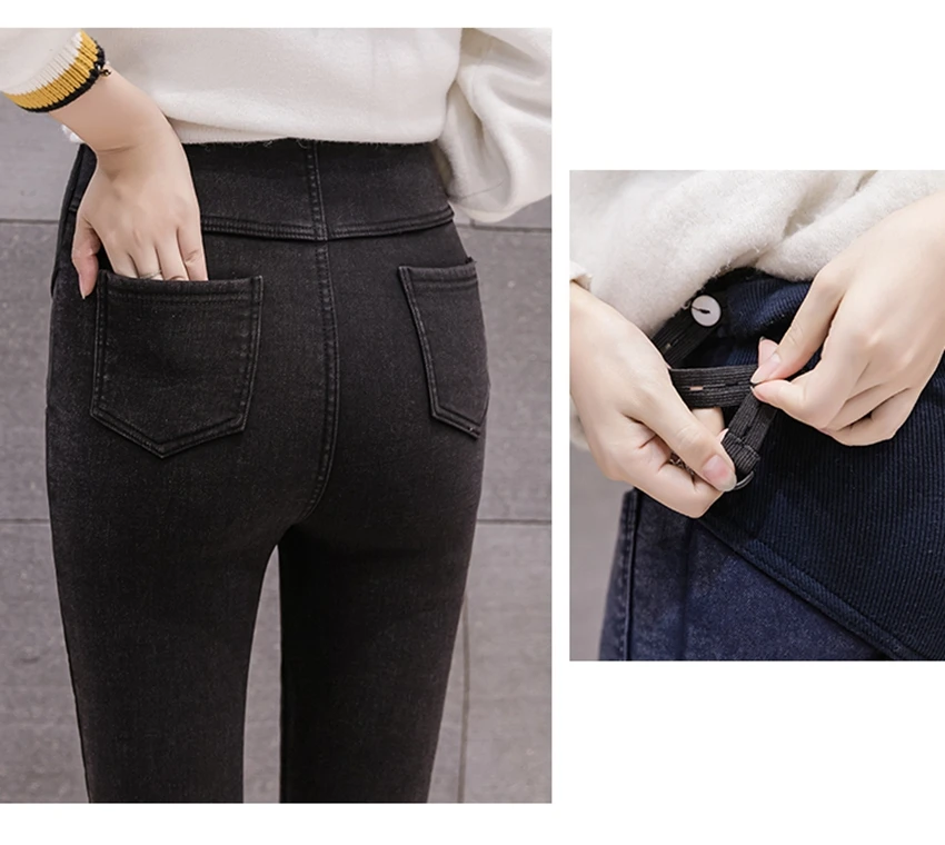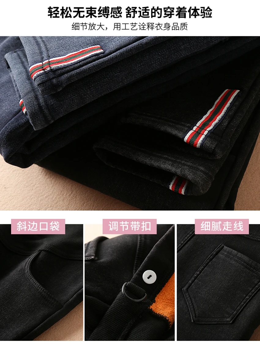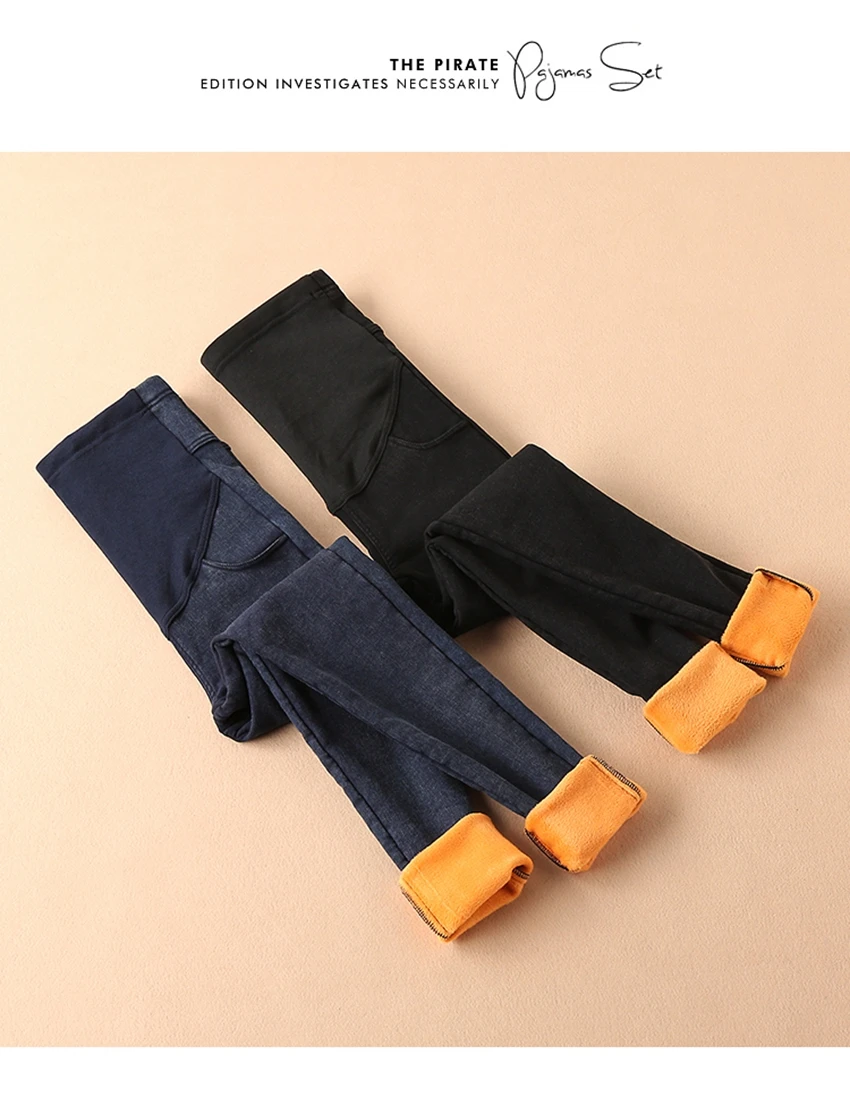 Women’s Warm Thick Pregnancy Denim Pants Winter Fleece Maternity Jeans for Pregnant Women Plus Velvet Maternity Trousers