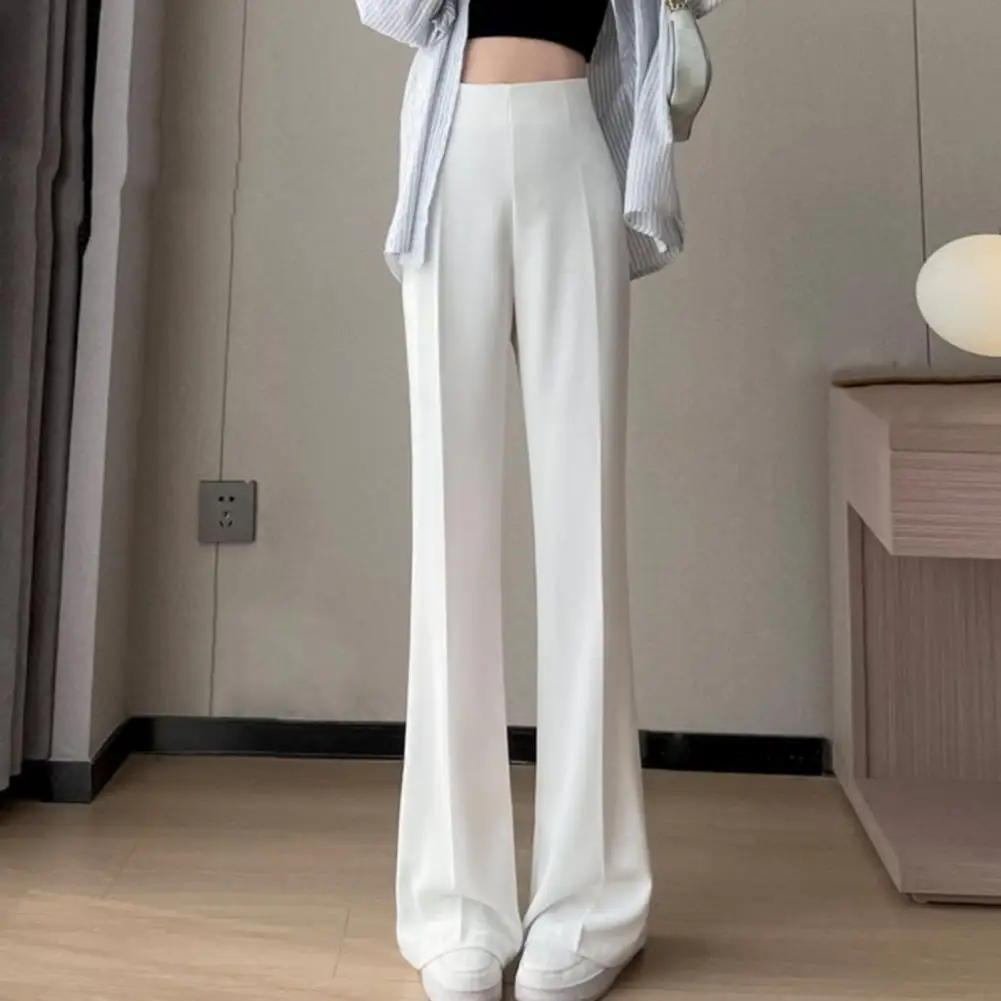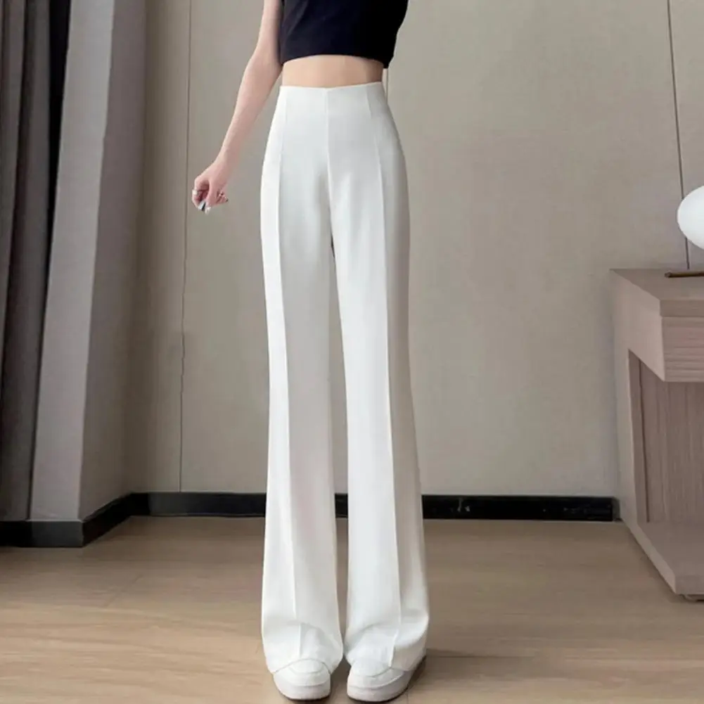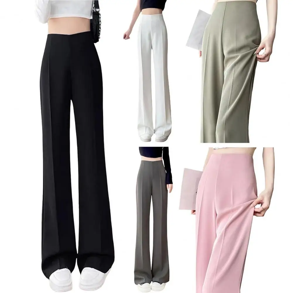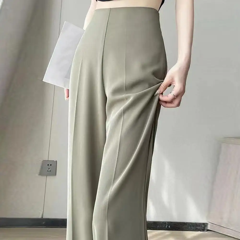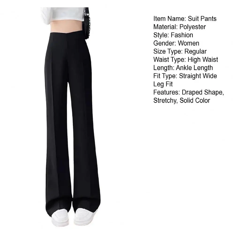 Women Summer Suit Pants High Waist Straight Wide Leg Long Trousers Solid Color Slight Flared Casual Pants Workwear