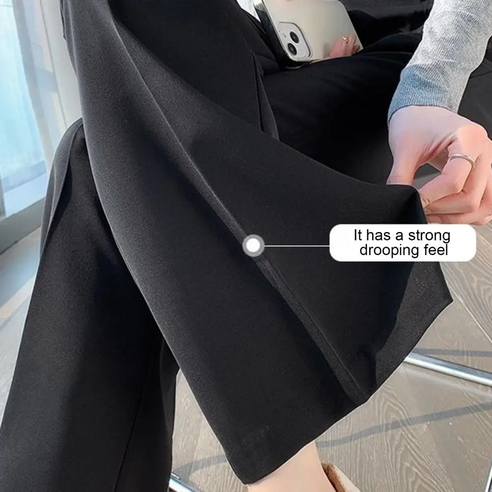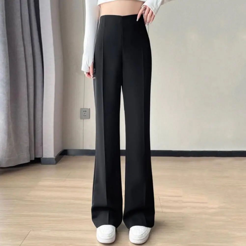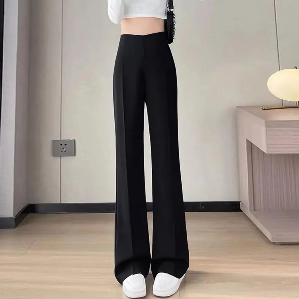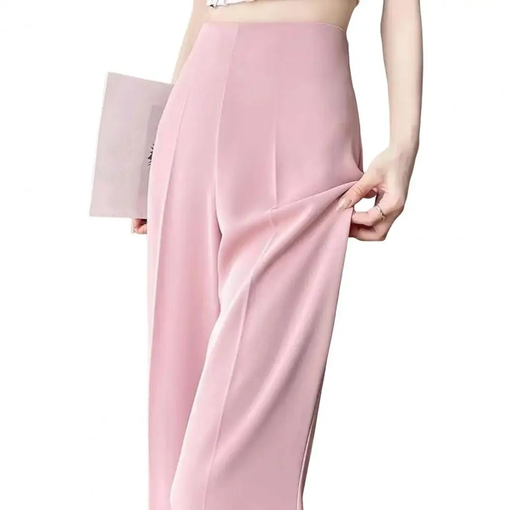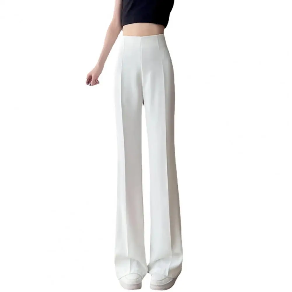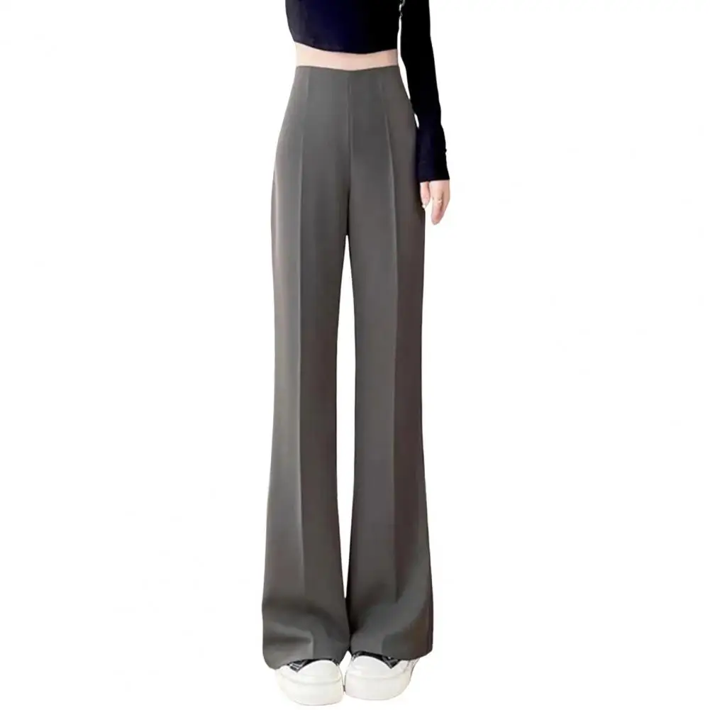Women Summer Suit Pants High Waist Straight Wide Leg Long Trousers Solid Color Slight Flared Casual Pants Workwear