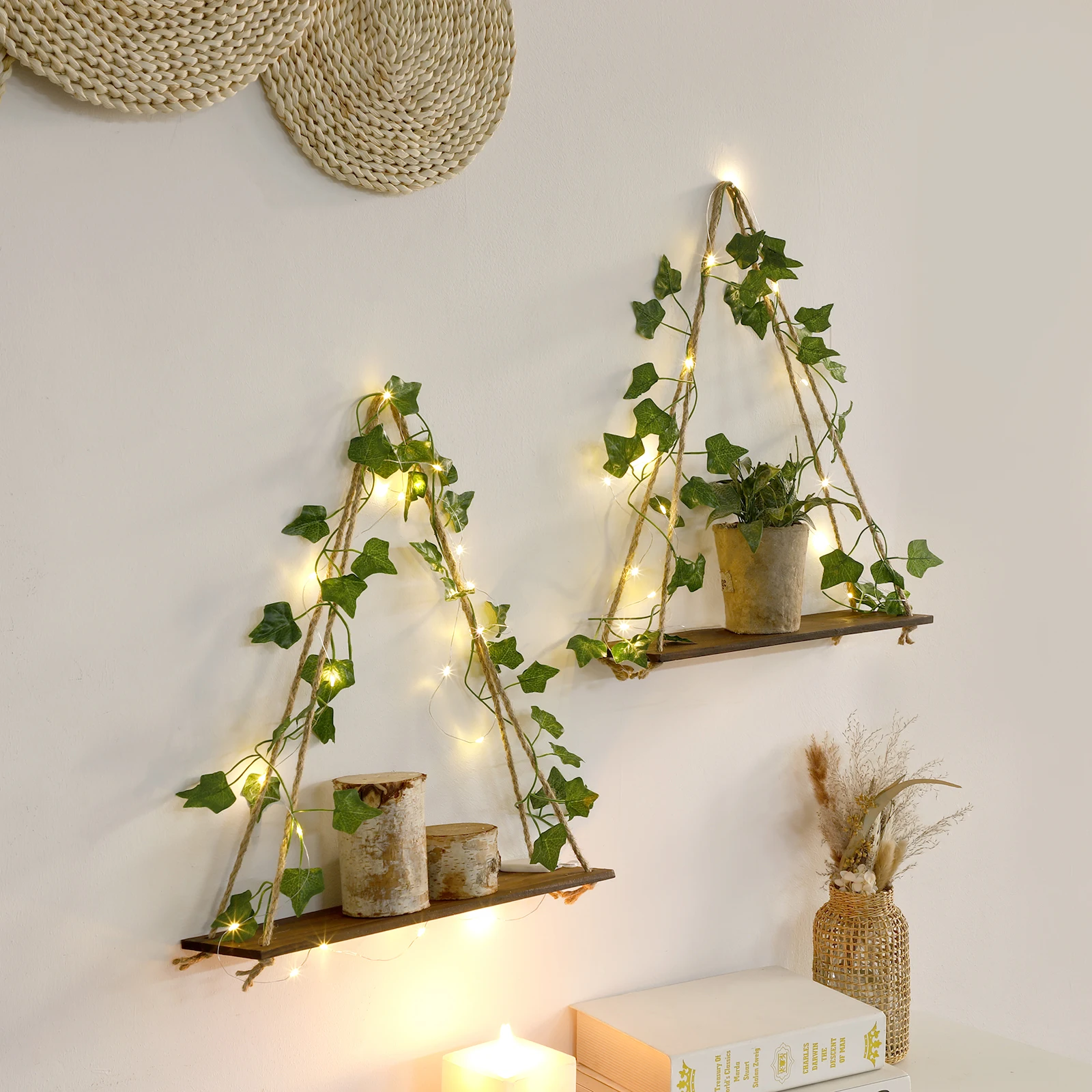 [Perfect Wall Decoration for a Botanical Oasis]: Our vintage LED floating shelves will transport you to a botanical garden, allowing you to enjoy the refreshing scent of nature from the comfort of your own home. Not only are these shelves perfect for storing books, displaying plants, photo frames, and art souvenirs, they also serve as beautiful wall decor. boho decor is versatile, perfect for any room from living room to bathroom.When you turn on the lights, the effect is absolutely stunning!