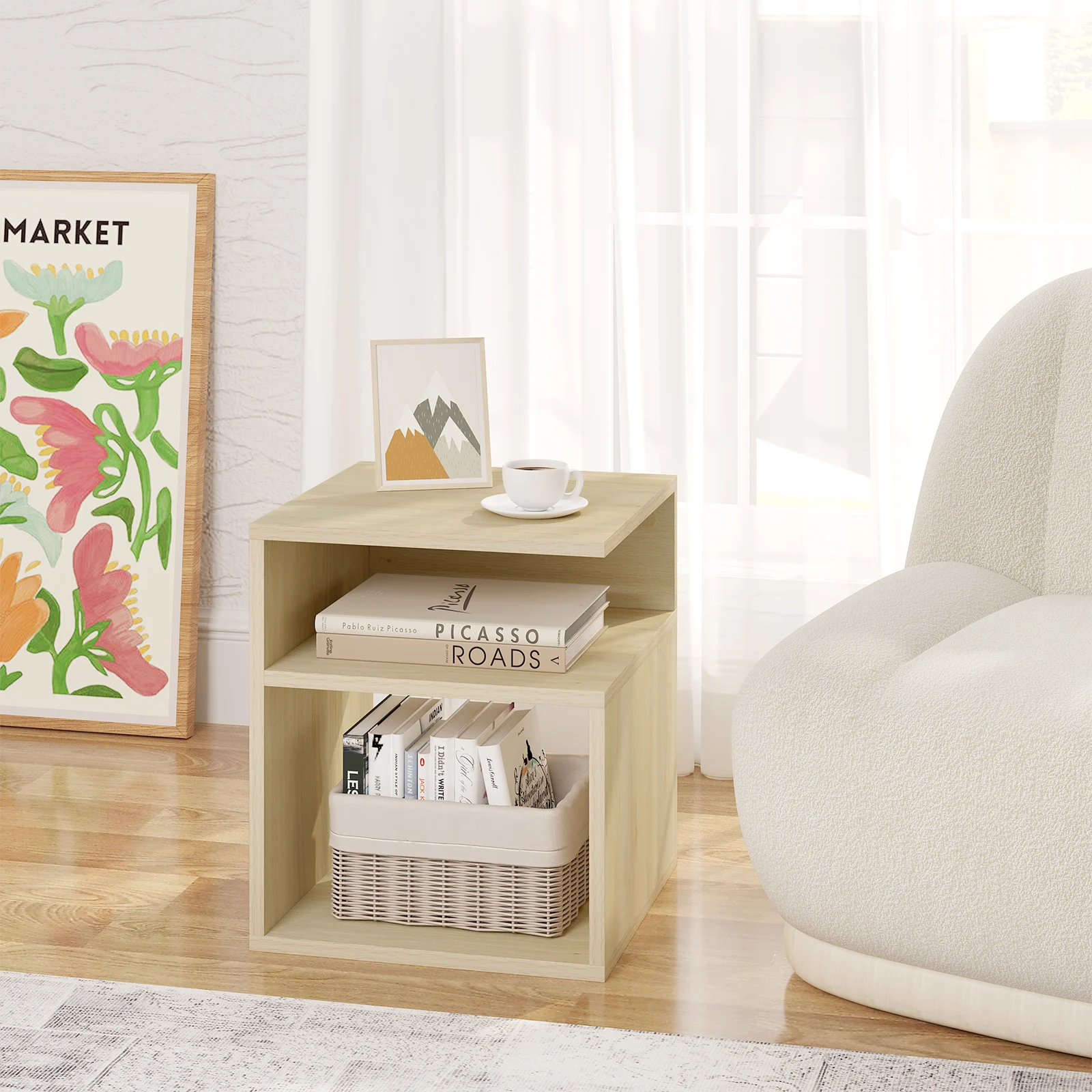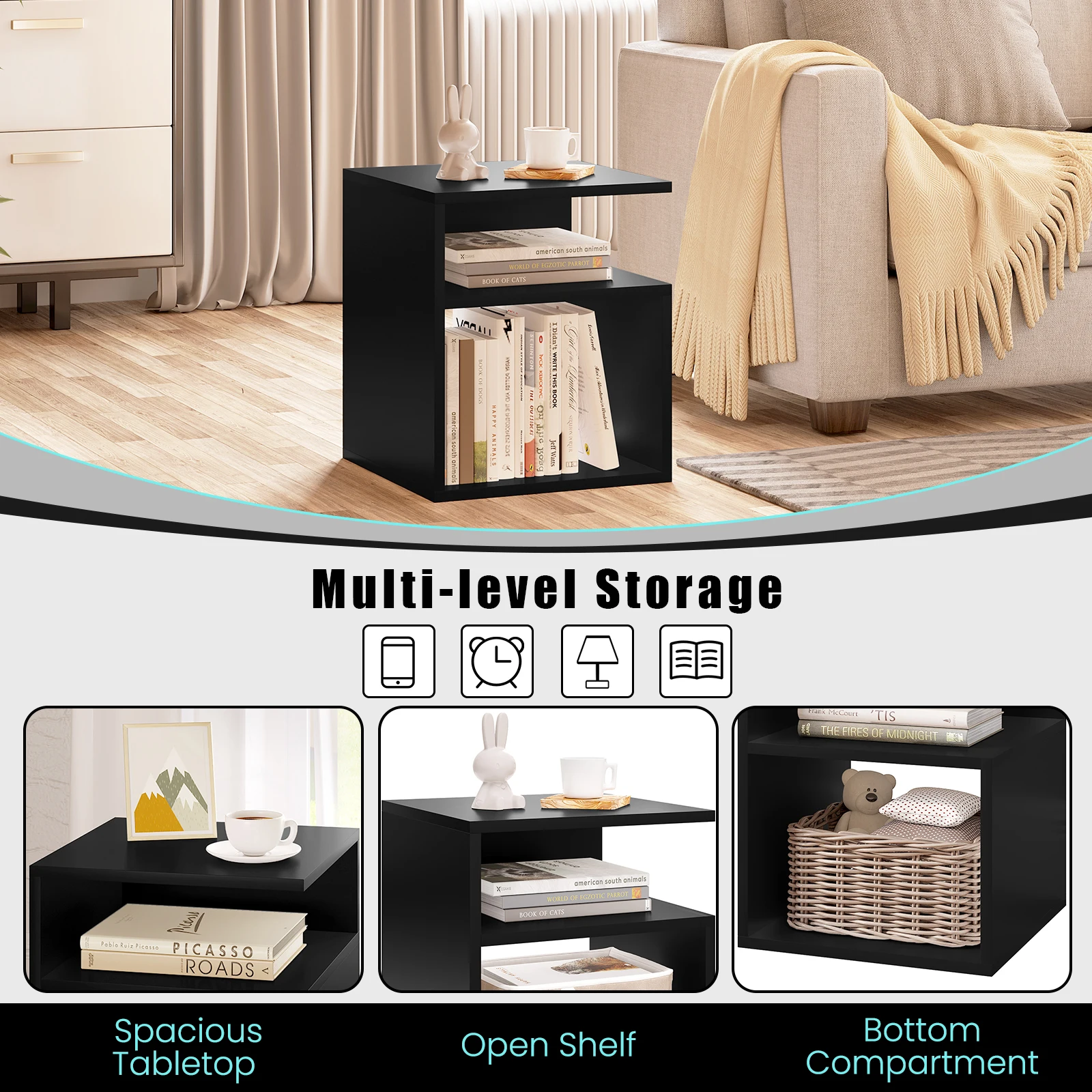 Be the first to review “Wooden Bedside Table Nightstand Simple Design Coffee Side Table with 2 Open Compartments Storage Furniture for Bedroom Home”