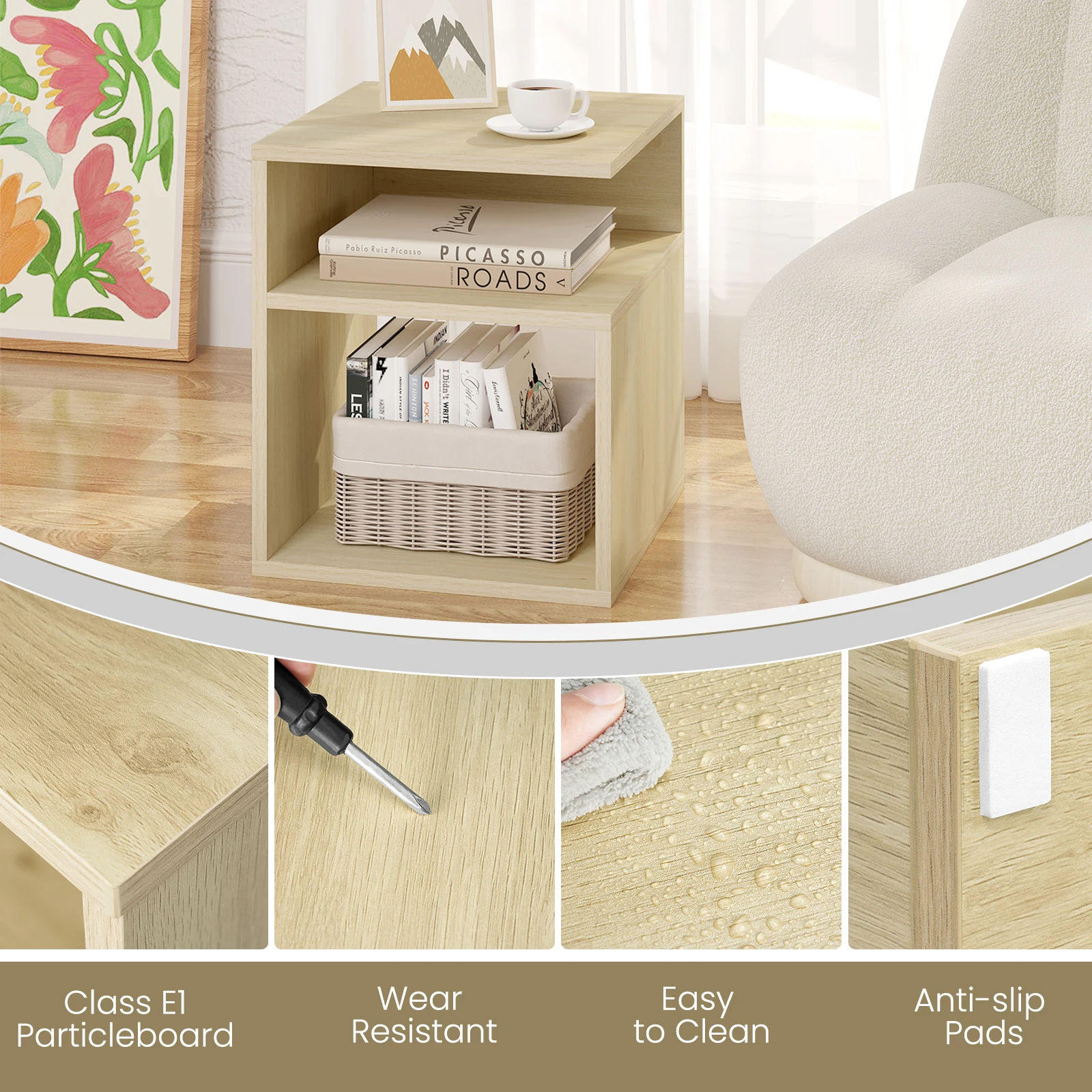 • Stable and robust: made of high-quality wood material, the bedside table is robust and not easy to deform; the square construction ensures stability; the finish is smooth, fine, water-repellent and scratch-resistant