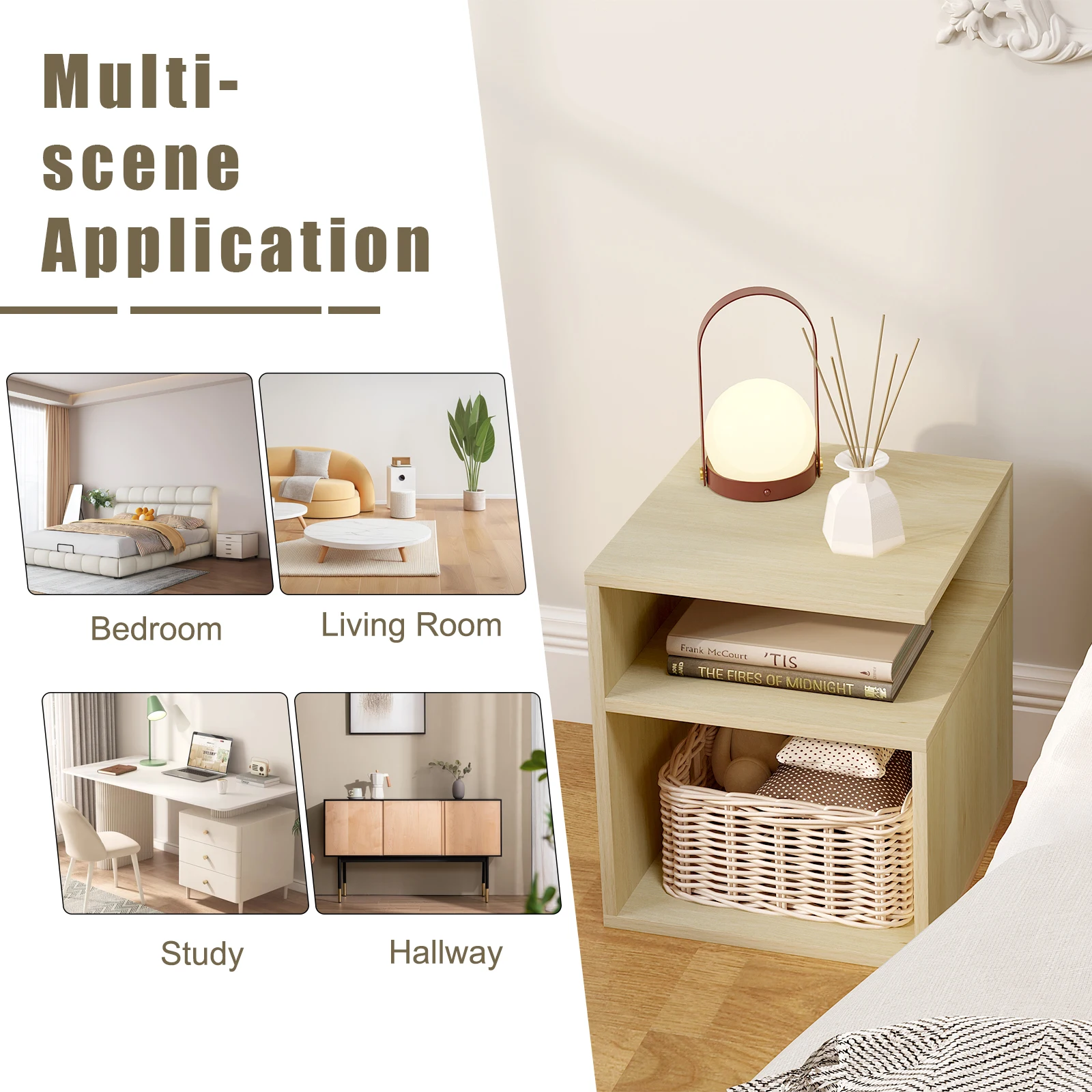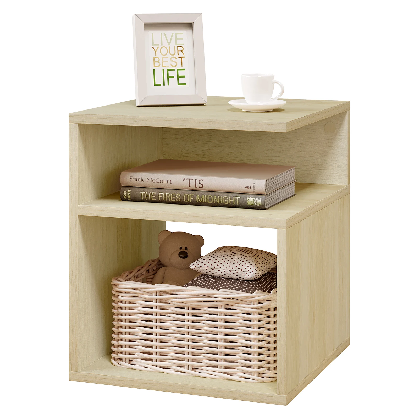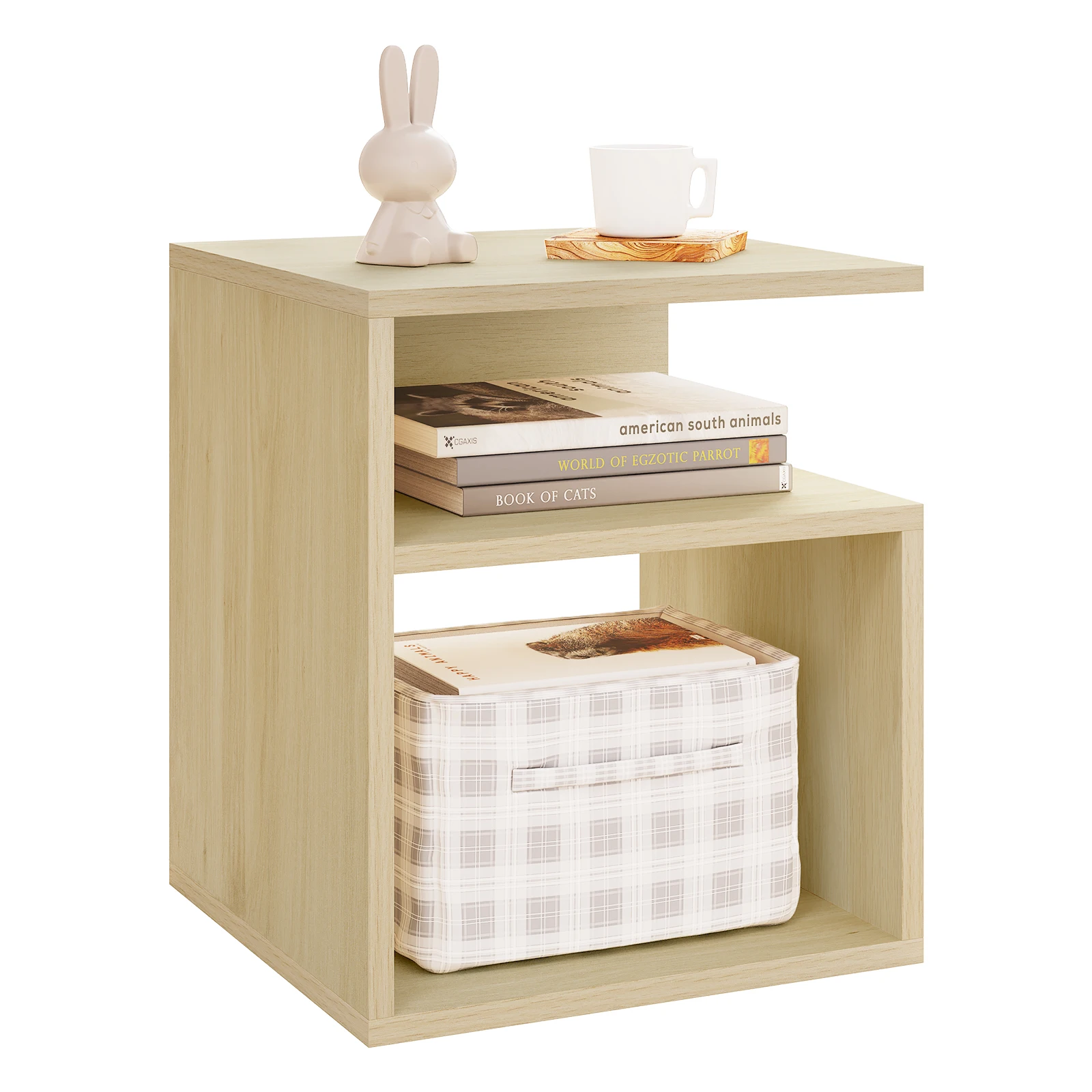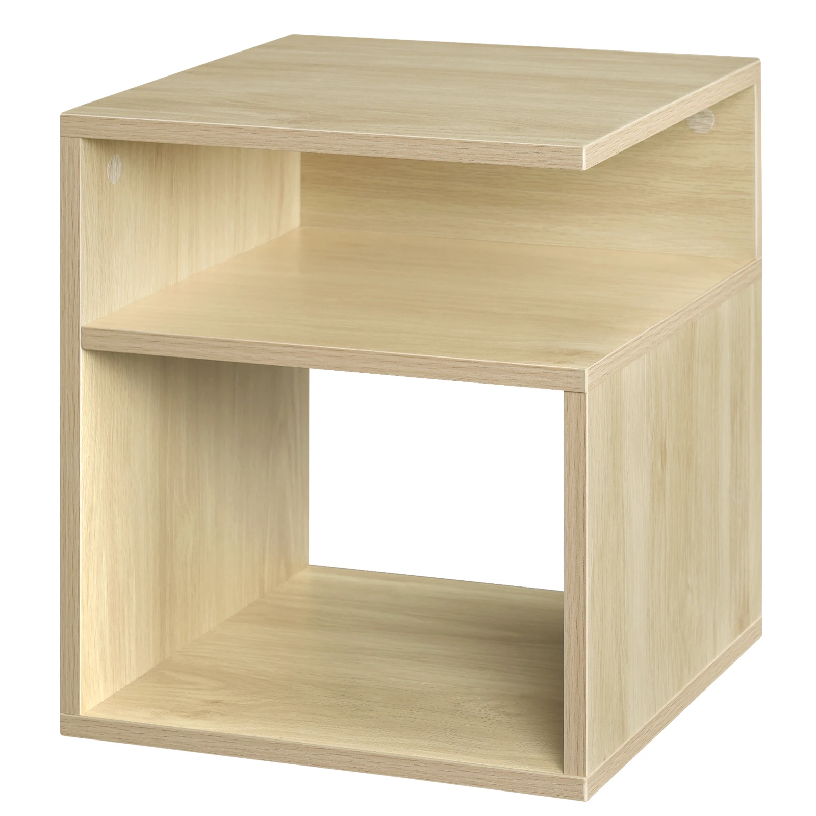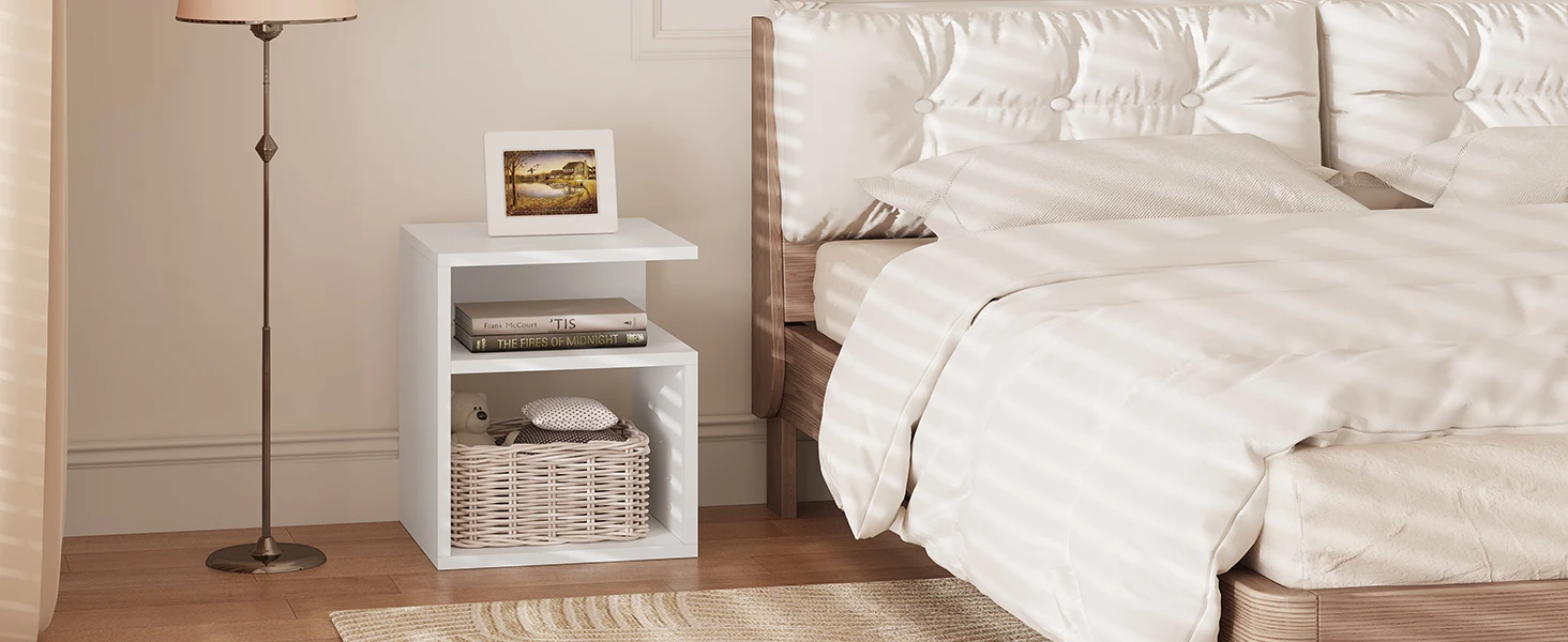 Wooden Bedside Table Nightstand Simple Design Coffee Side Table with 2 Open Compartments Storage Furniture for Bedroom Home