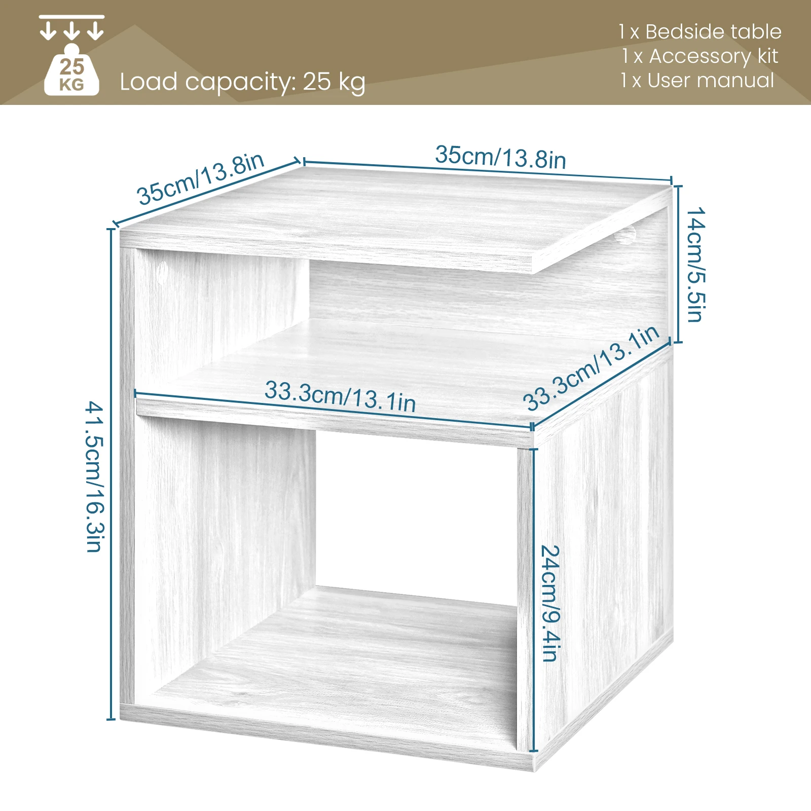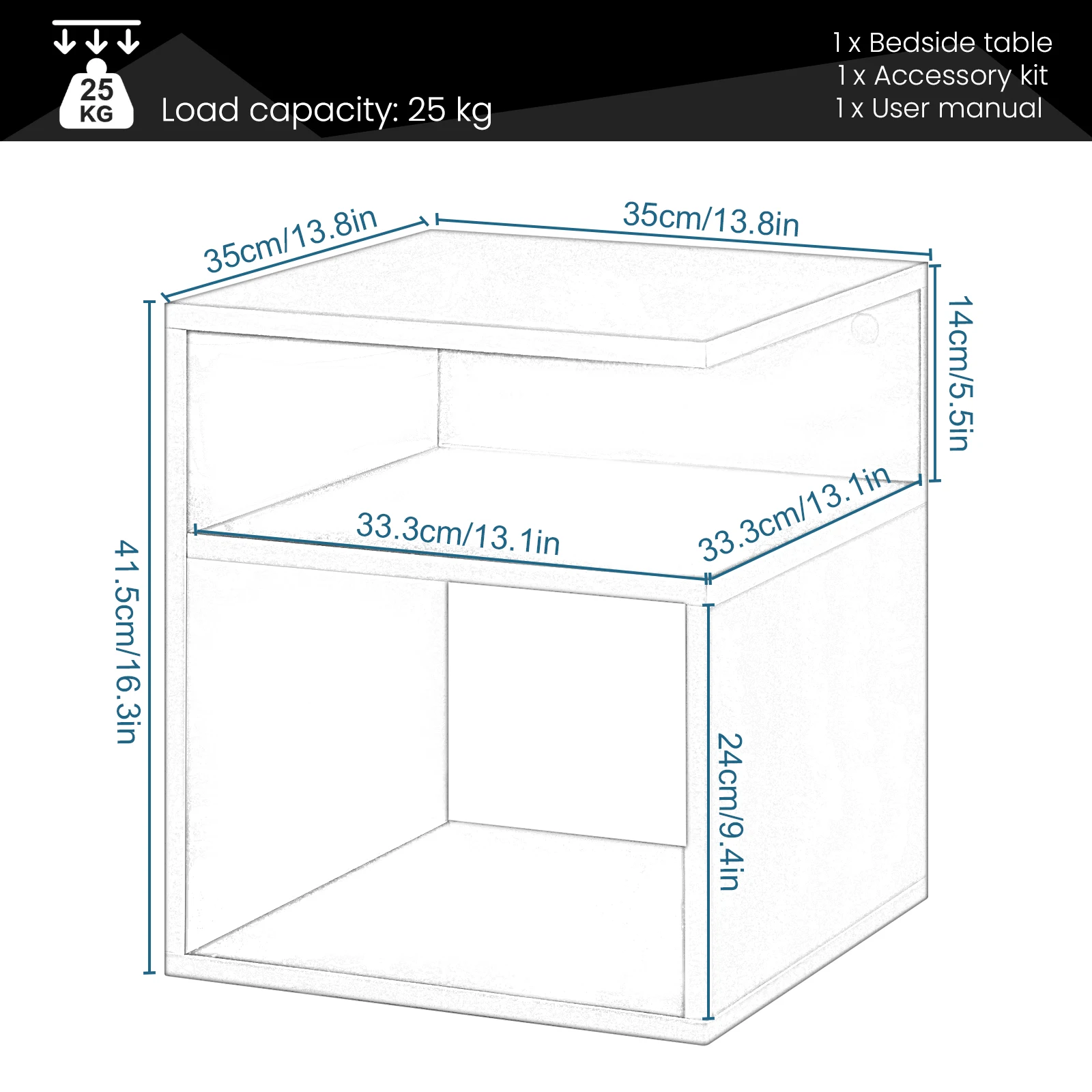 • Table top: 35 x 35 cm (W x D)