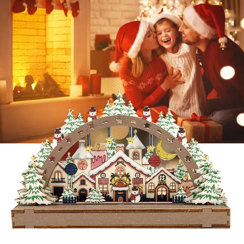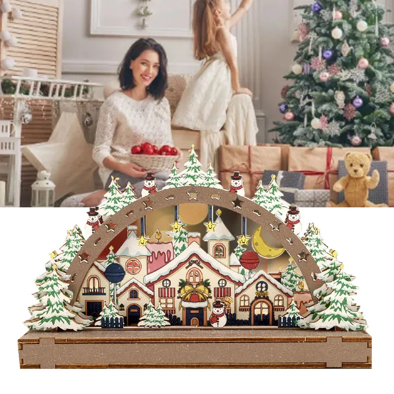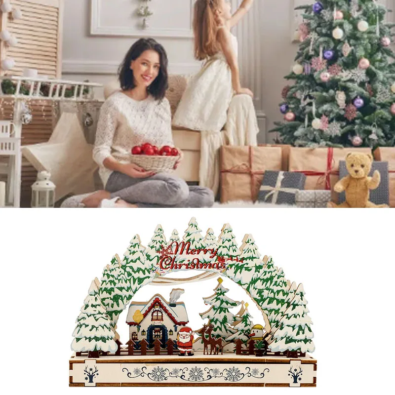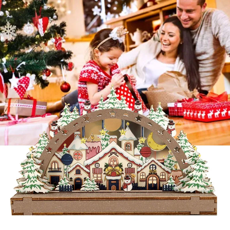 Wooden Christmas Ornament, Merry Christmas, Christmas Village Desktop Decorations for Home, 2024 Christmas Decoration