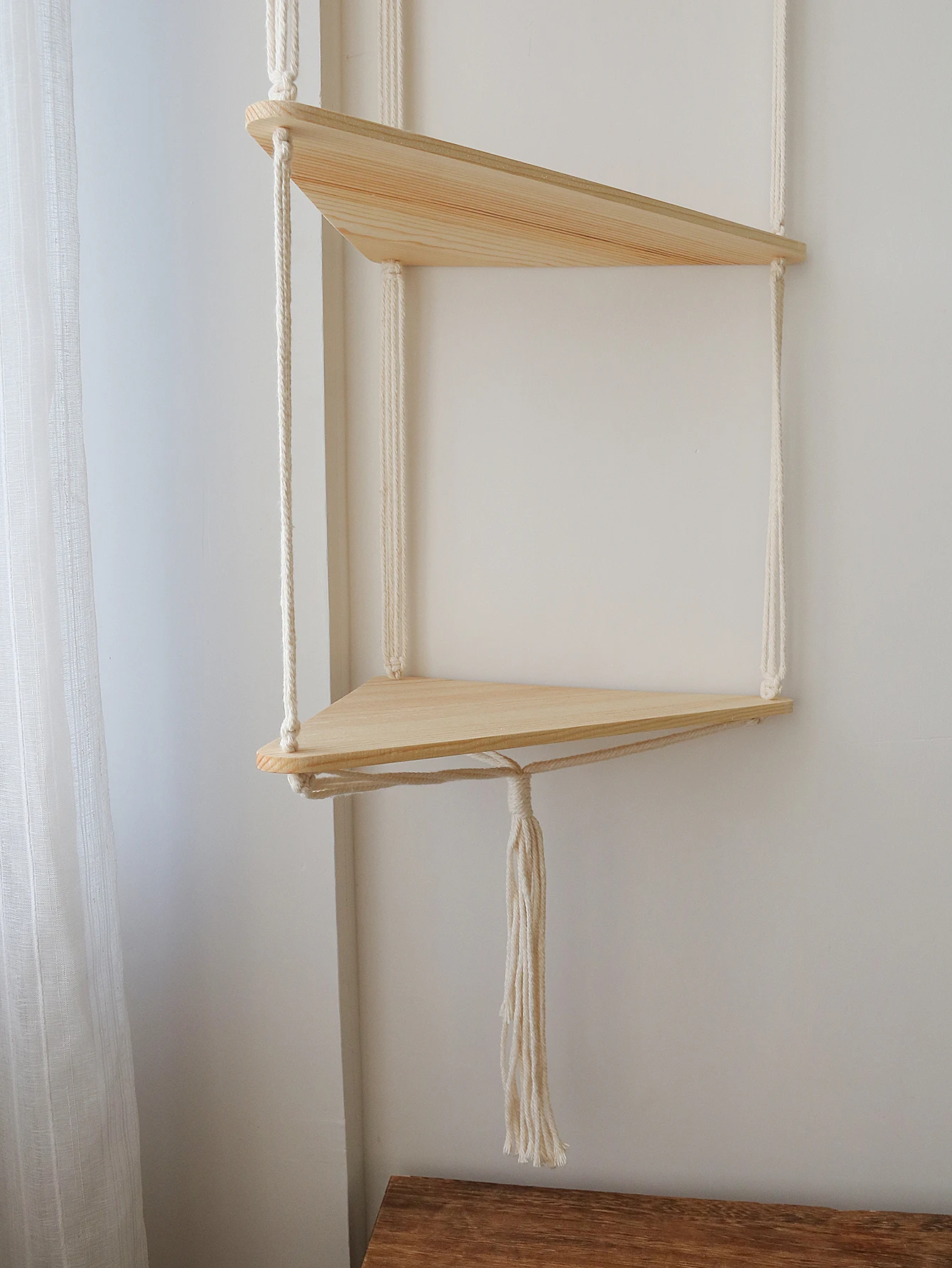 This wall hanging shelf can display your favorite succulents plants, candles, pictures, books, personal collections and other common items.The rope hanging shelve can be used as wall decoration for kitchen accessories dining room, Bathroom Accessories,living room, bedroom, apartment, dormitory, office, etc.