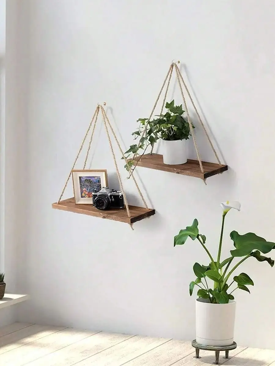 This wood hanging shelf rope is the best decoration in the home. Floating hanging shelf can be hung in various places in the home. It can be hung in the bedroom to place photo frames. a living room hung potted plants, hung in the bathroom to put the cosmetics and skincare products. Stylish and practical is the perfect decoration on the wall.Our customers are so creative. They use the wood wall shelves to display small plants, flowers, pictures, candles, and other knick-knacks.