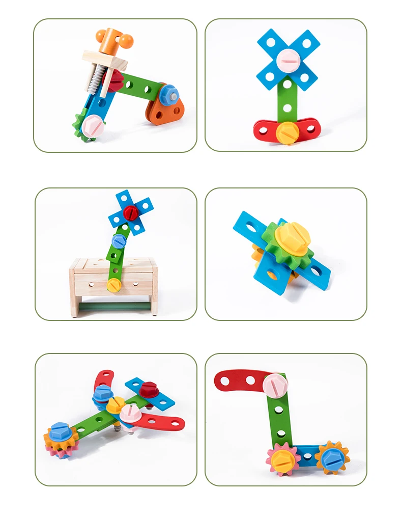 Kids can assemble and disassemble various structures, experiment with how gear interlocks and tools work. As they twist, turn, and assemble parts together, they develop fine motor skills, hand-eye coordination, and problem-solving abilities.