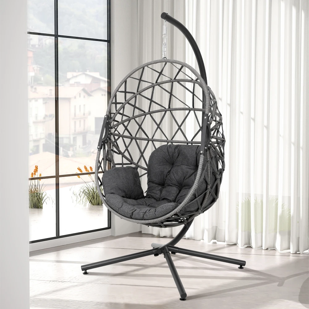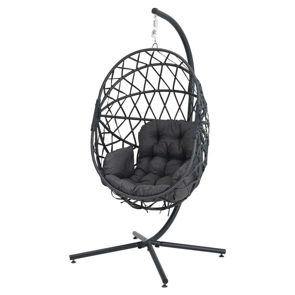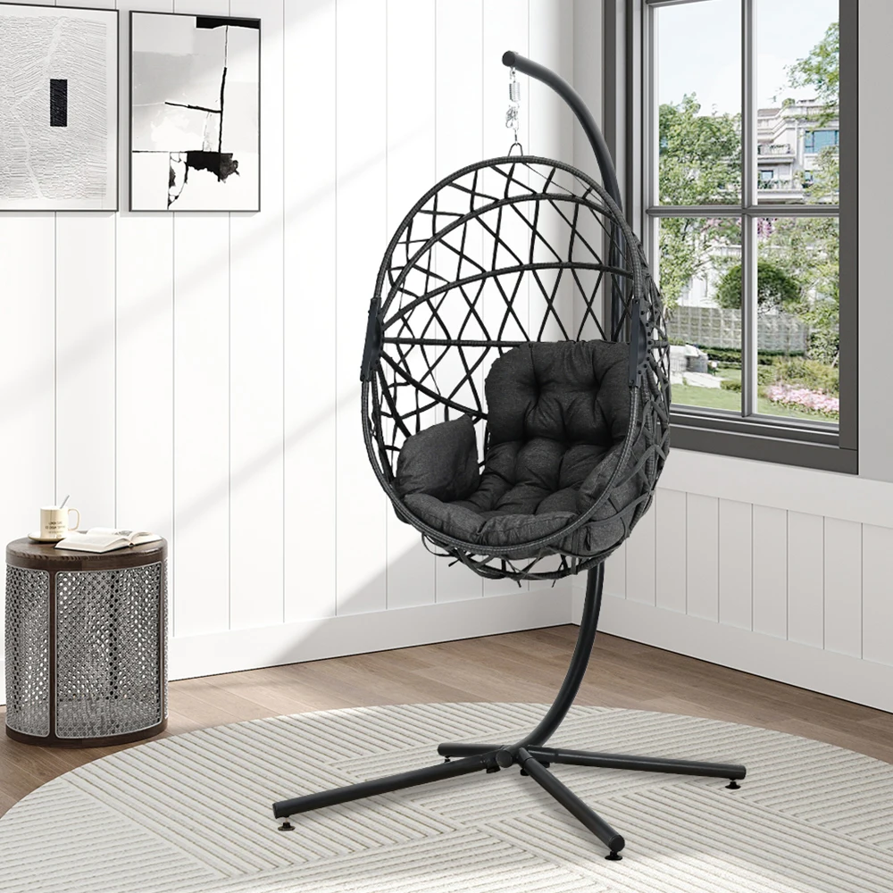 Our hanging chair with stand is the kind of chair that you want to bathe under the sun and enjoy your lazy afternoon in. The best part of this chair is that it is also fitted with a softly padded cushion with a head pillow, so that you can snuggle in for as long as you want. The entire frame of the chair is wrapped round with rattan, which adds a sense of rustic touch, and it can elevate your indoor or outdoor setting effortlessly.