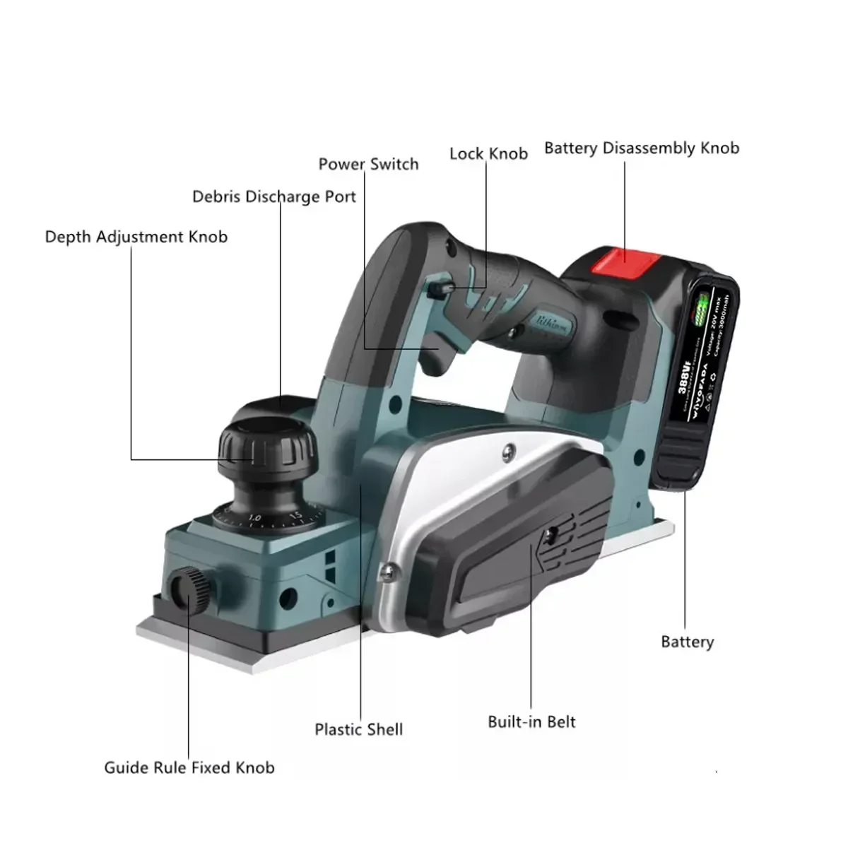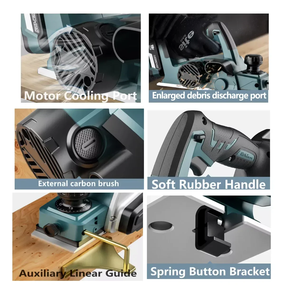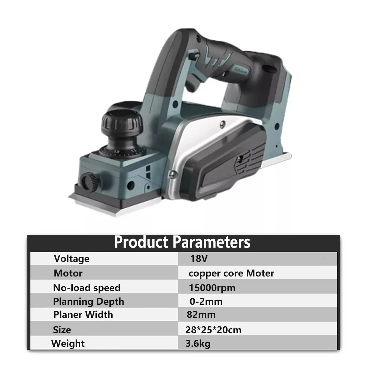 WOYOFADA 18V 15000RPM Rechargeable Electric Planer Cordless Handheld Wood Cutting Tool with Wrench for Makita 18V Battery
