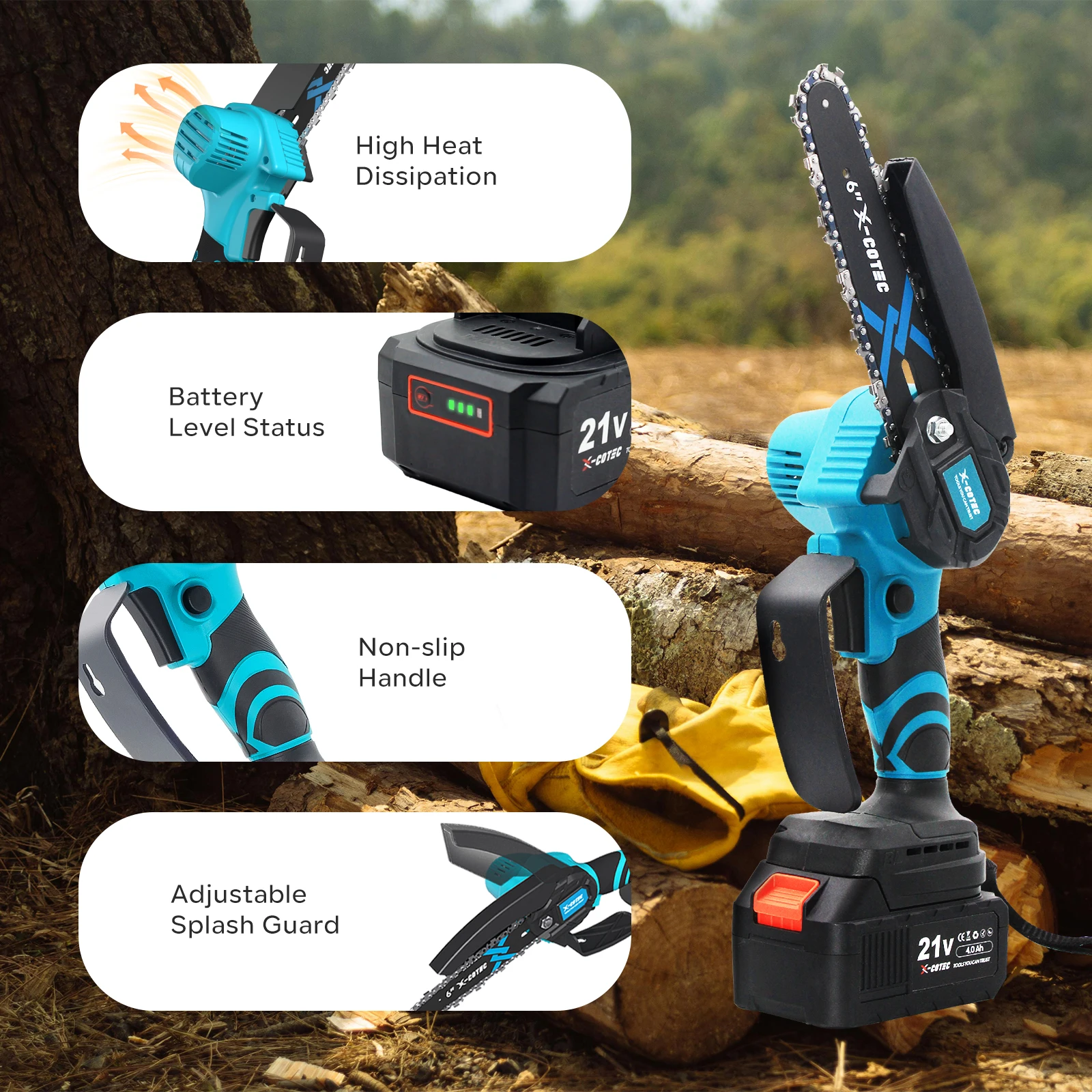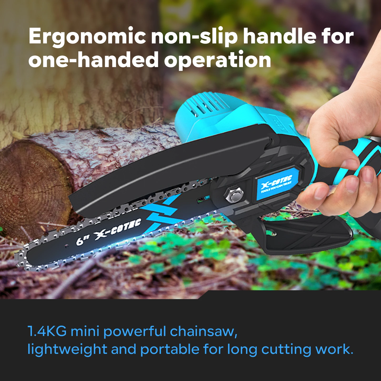 X-COTEC 6 Inch Chainsaw Cordless, 500W Electric Saw with 2 x 4000mAh Batteries, Lightweight Handheld Garden Power Tools,Cut Wood