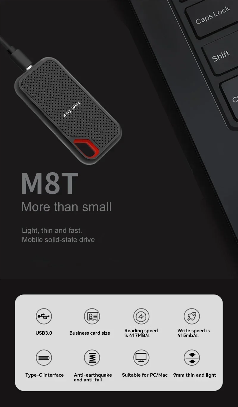 Xiaomi Mijia High Speed External Hard Drive 128TB 256TB Hard Disk Portable SSD USB3.1 Type-C Interface Storage Device for Laptop