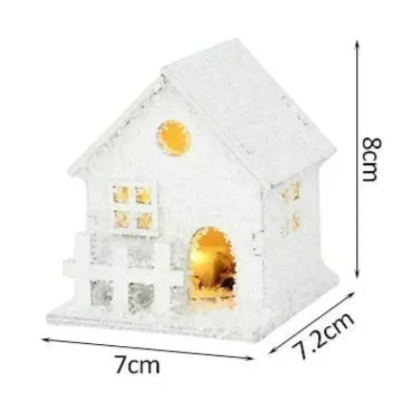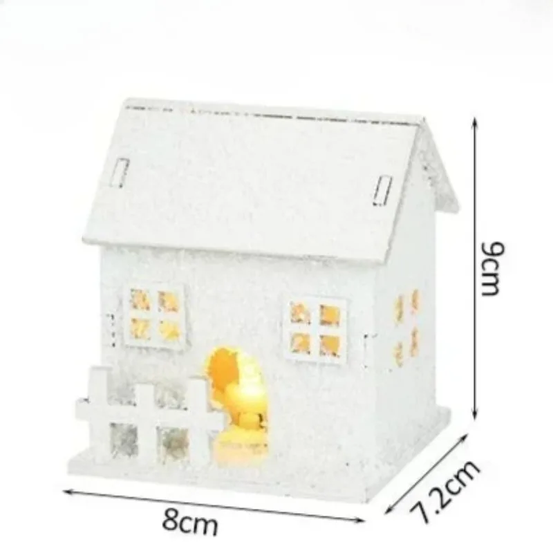 Xmas Ornament Christmas Led Light Wooden House with Snowflake Luminous Cabin Christmas Decorations