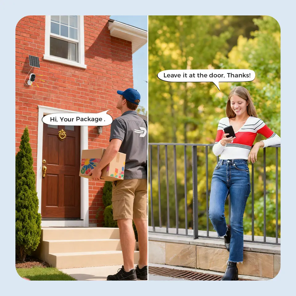 In addition, the camera can also provide audible and visual alarms, when the wireless camera detects motion, it will emit a dazzling light and piercing alarm sound to repel intruders.