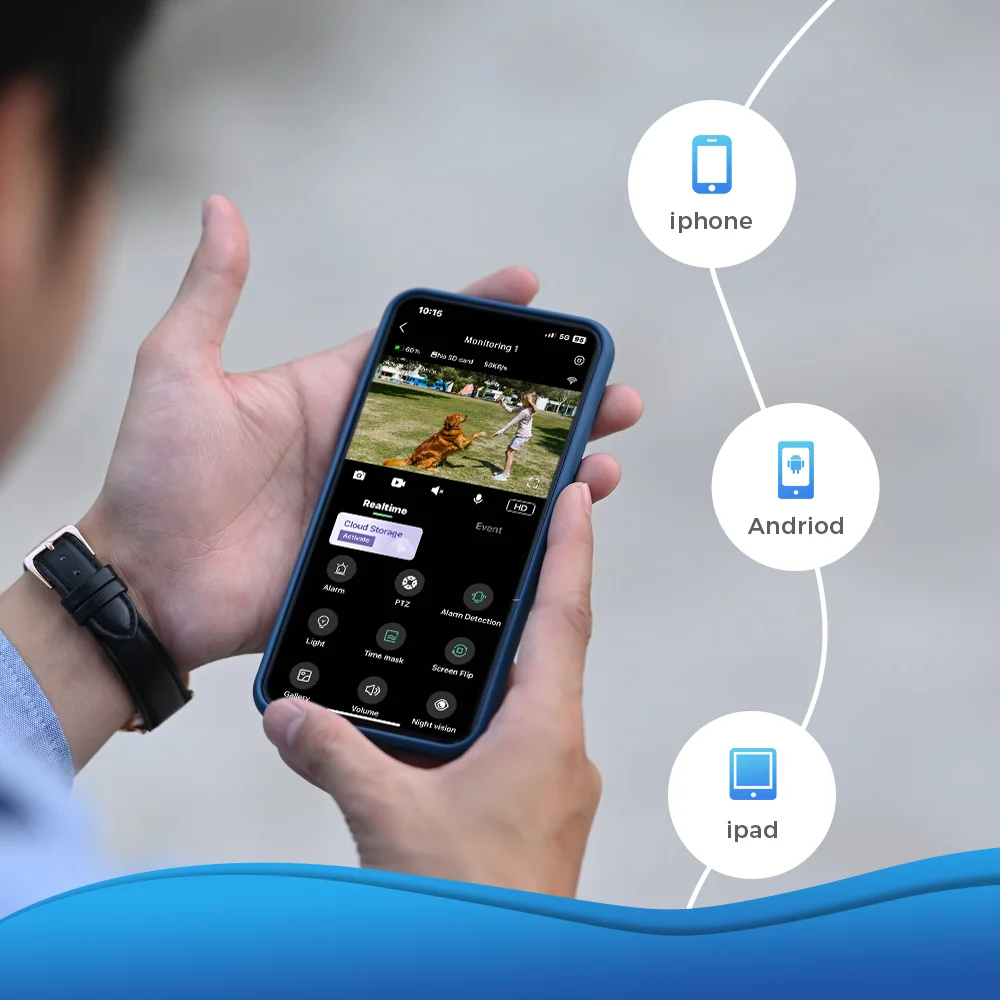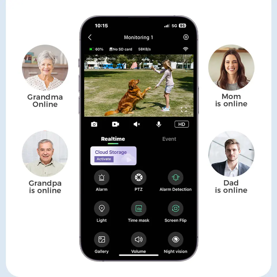 Supports multi-user connection and device sharing. Just click 'Share' on the app to easily share the camera with your family and friends.