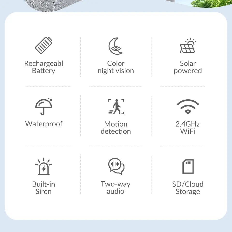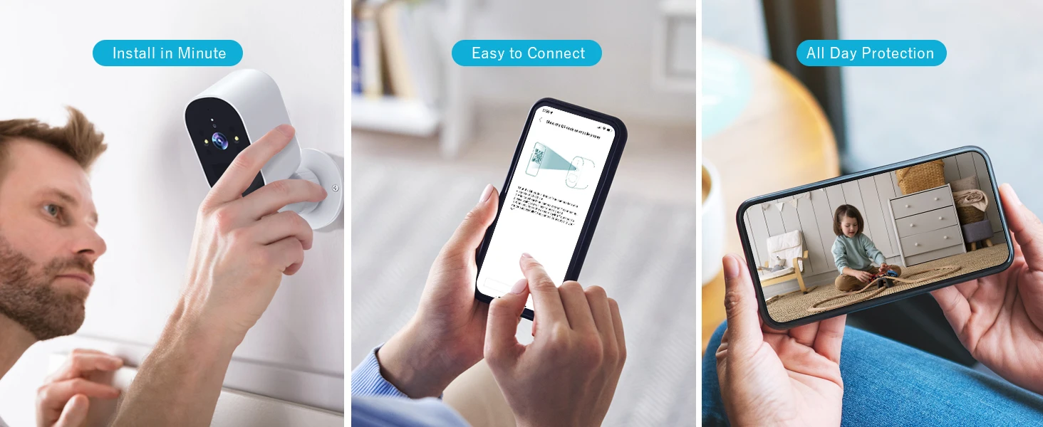 2. Wireless outdoor camera can only connect to 2.4GHz WiFi. 2.4GHz WiFi has broad compatibility and the ability to penetrate obstacles, ensuring connection stability and wider coverage for wireless outdoor security cameras.