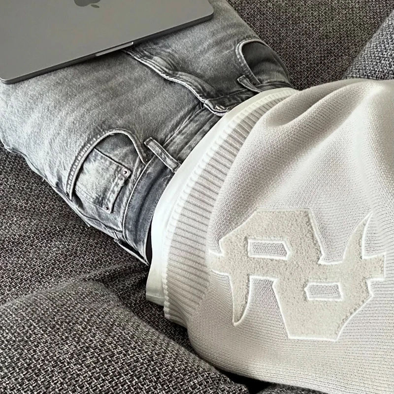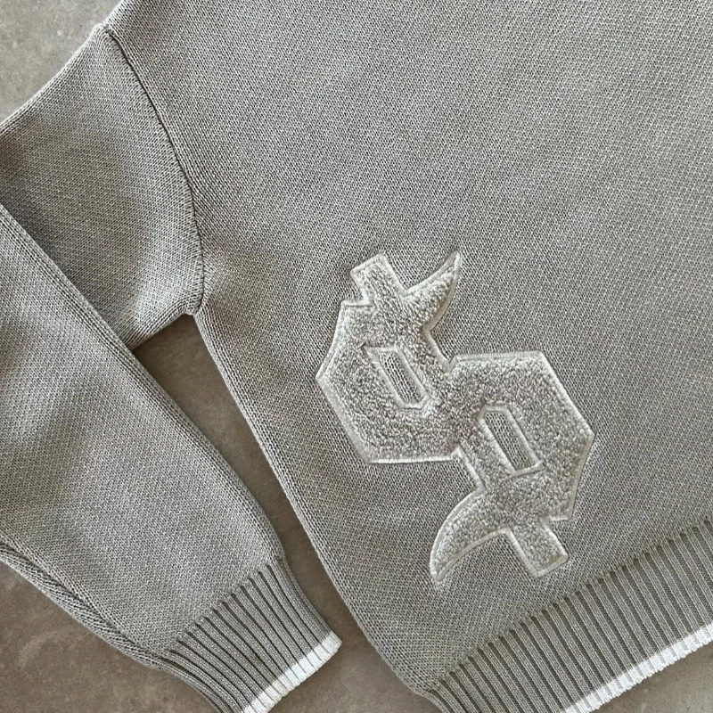 Y2K Grey Long Sleeve Sweater Dollar Gothic Embroidery Pullover Goth Retro Casual Streetwear Old Money Men Boxy Knitted Clothing