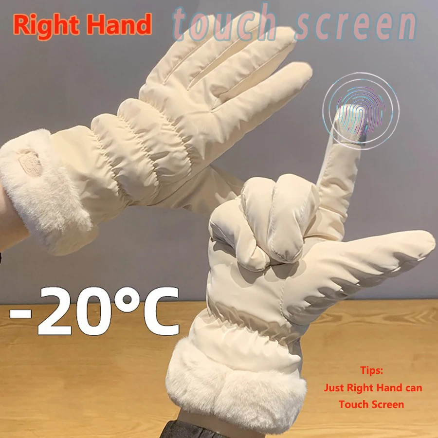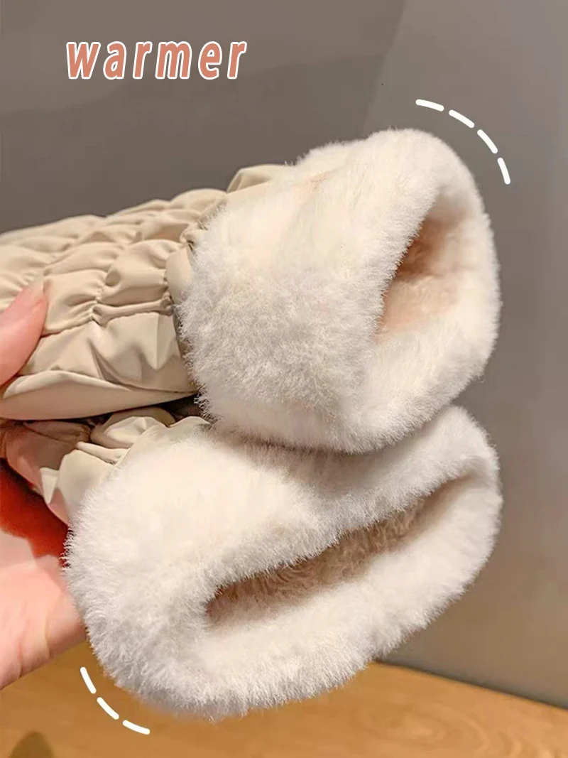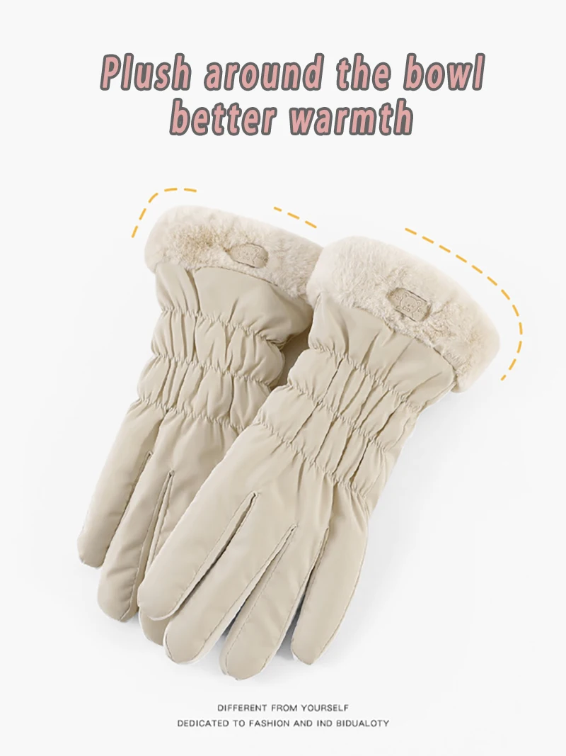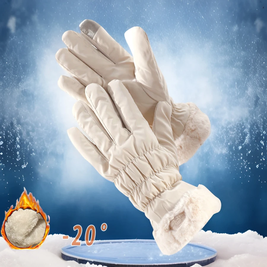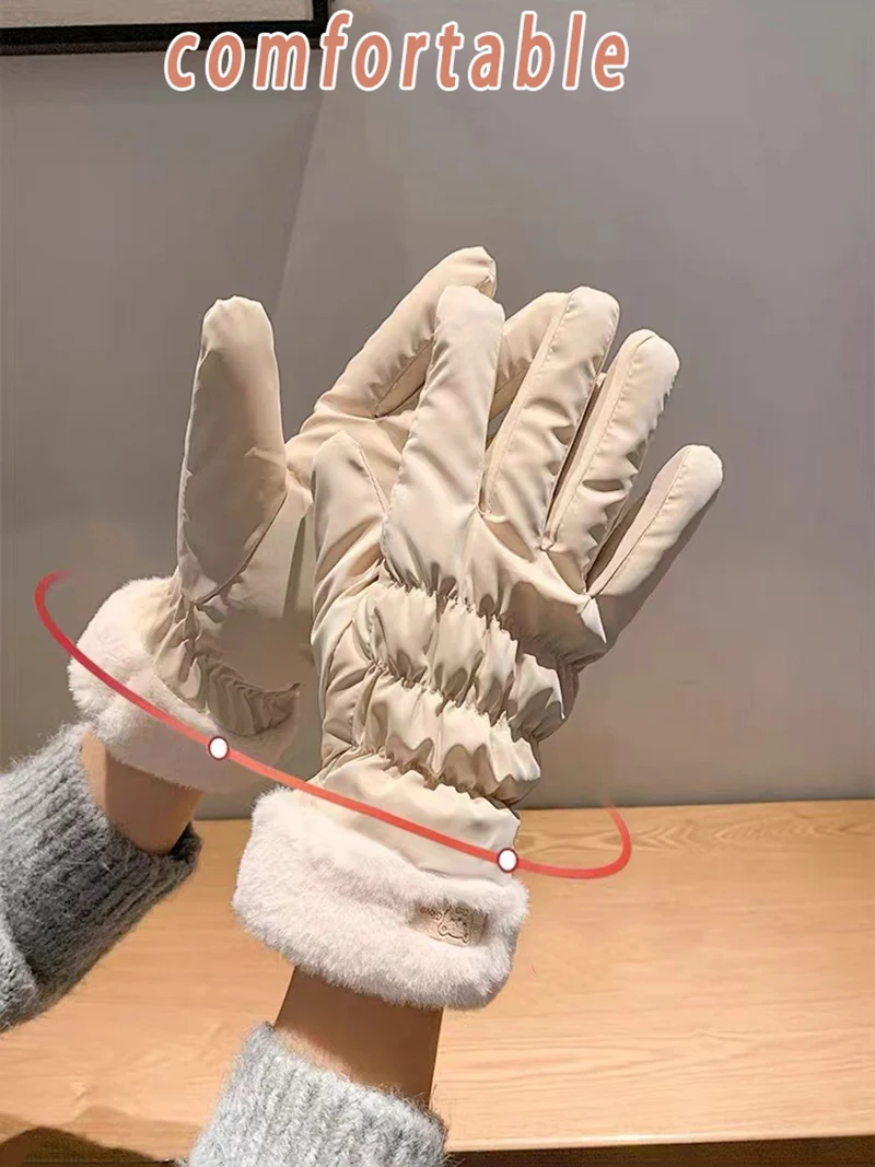 YANBIGUO Soft Plush Cuff Gloves Plus Velvet Thickened Warm Waterproof Touch Screen Autumn Winter Coldproof Cycling Ski Gloves