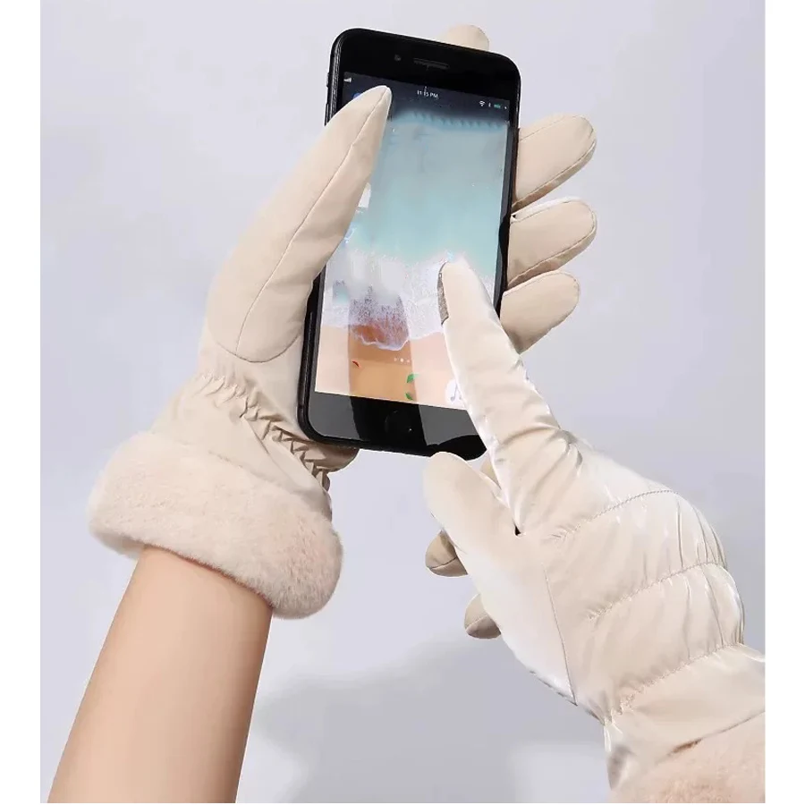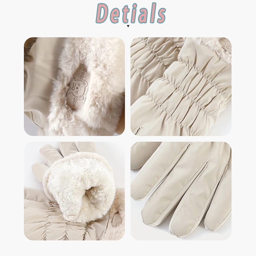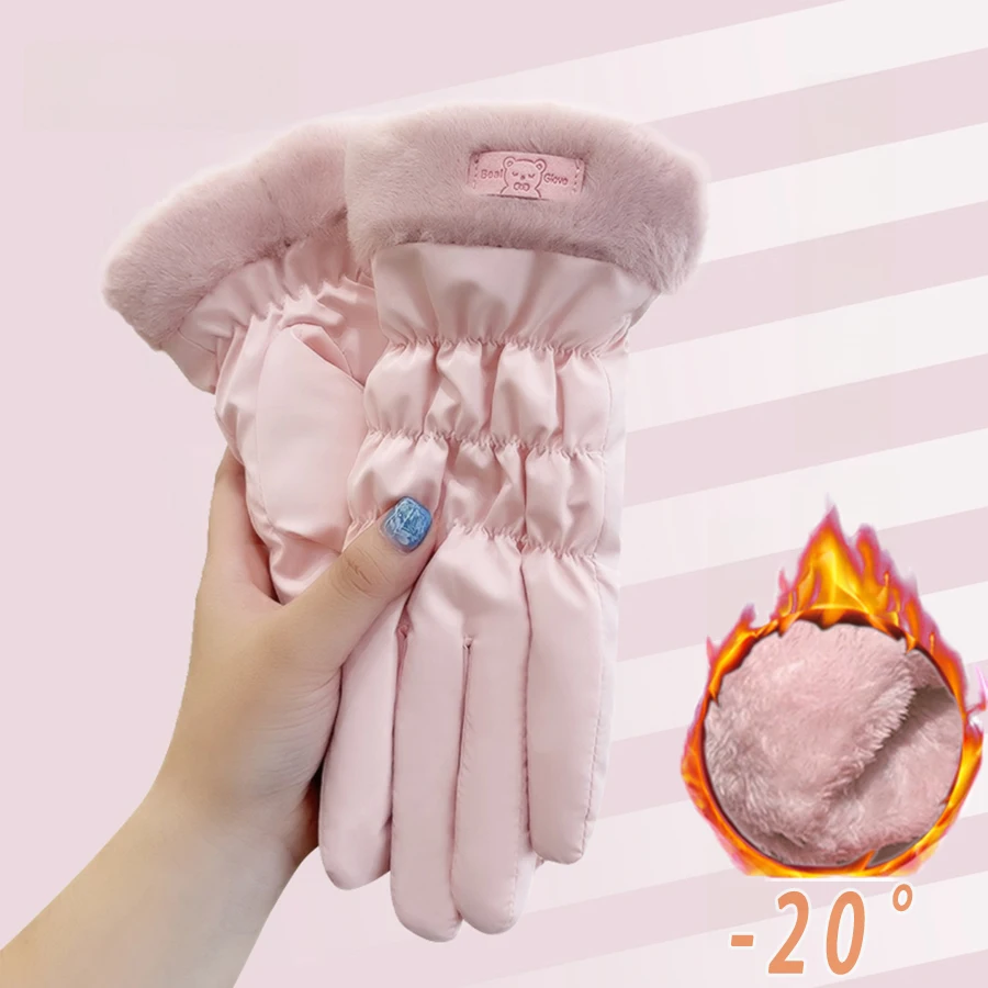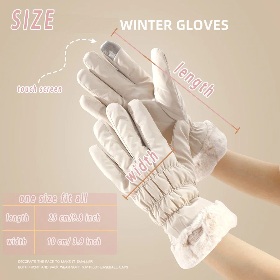 YANBIGUO Soft Plush Cuff Gloves Plus Velvet Thickened Warm Waterproof Touch Screen Autumn Winter Coldproof Cycling Ski Gloves