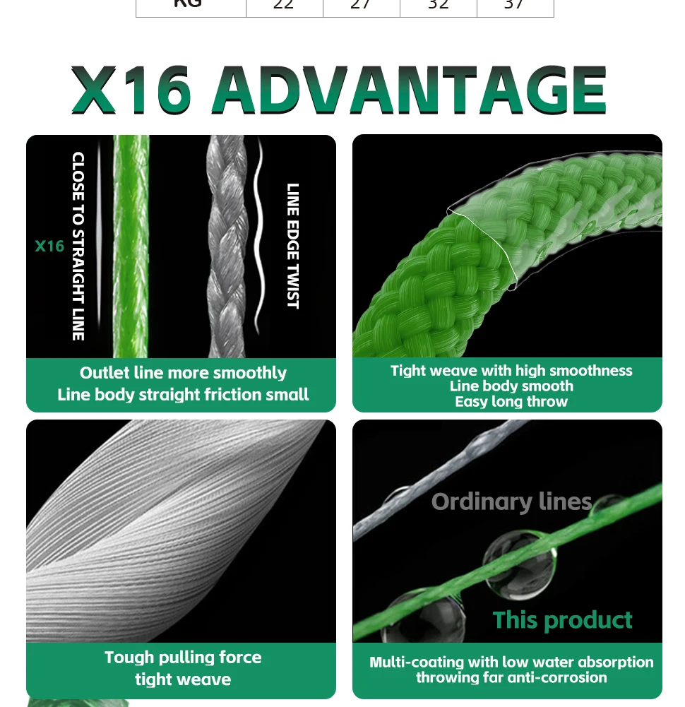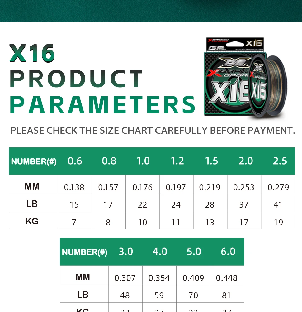 YGKX Braided Fishing Line X16 100/150/200m All for Fishing Line 15-81LB Multifilament PE Line for Saltwater Sea Fishing Wire