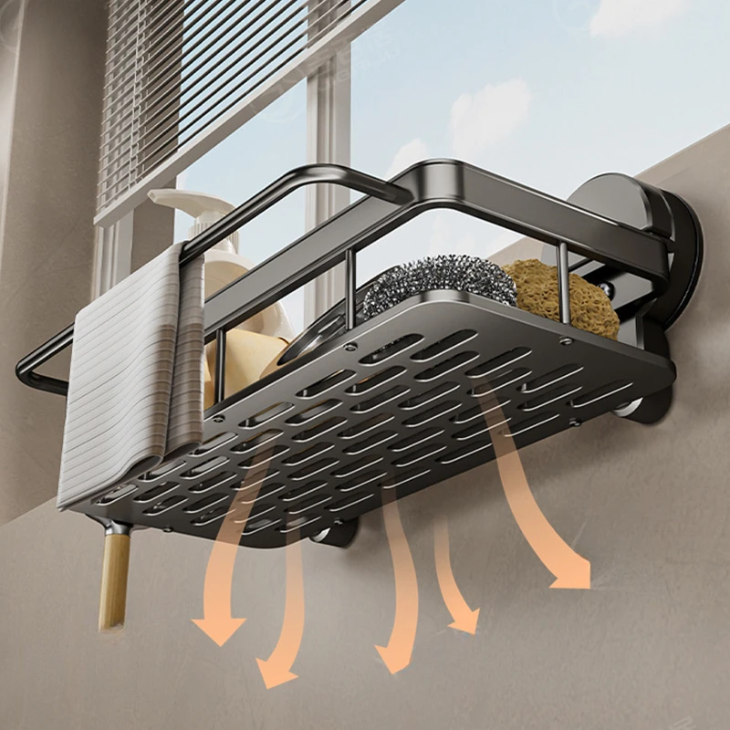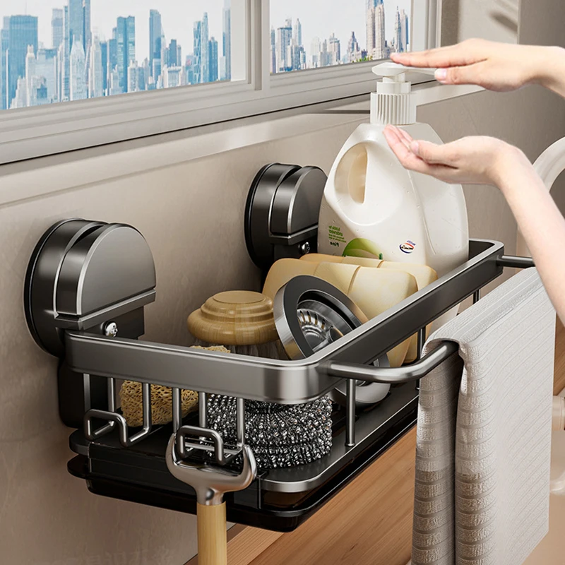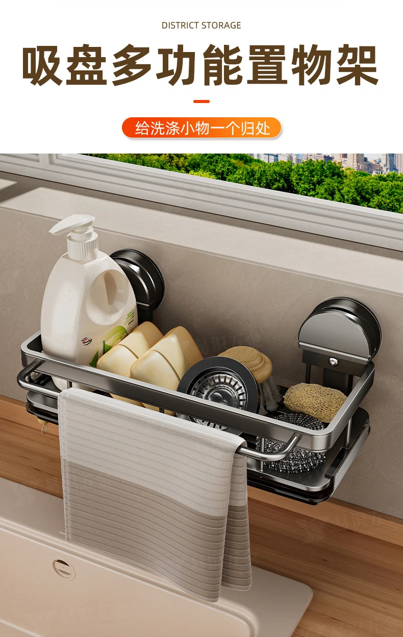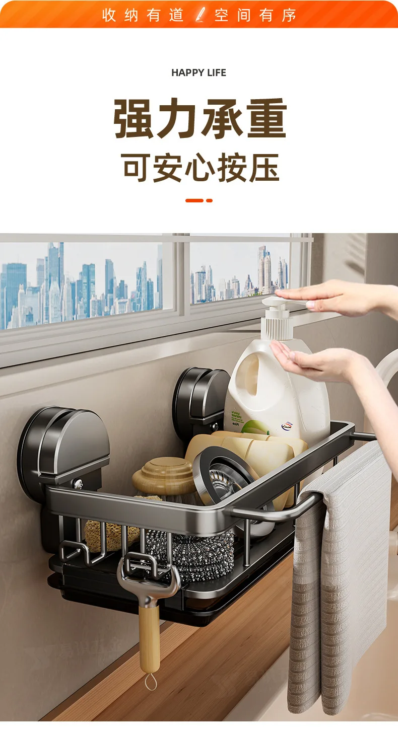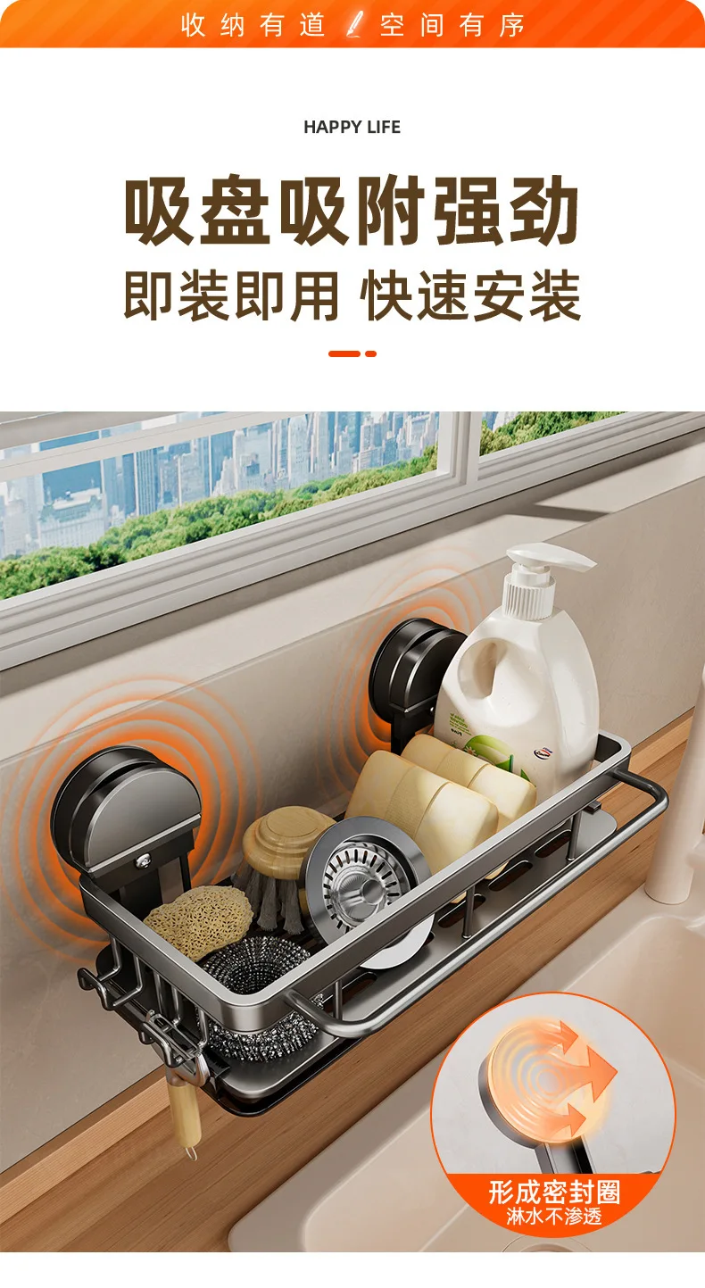 2 reviews for YM No-Drill Kitchen Sink Storage Rack Suction Cup Cloth Draining Rack Multifunctional Wall-Mounted Sink Shelf for Utensils Dishe