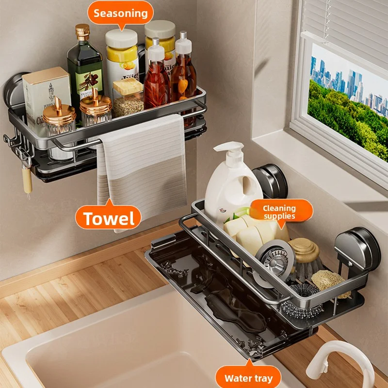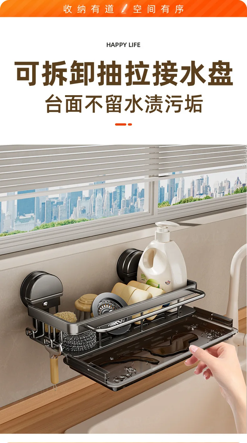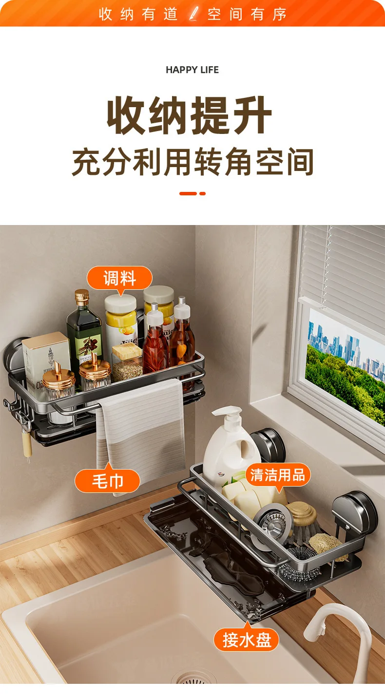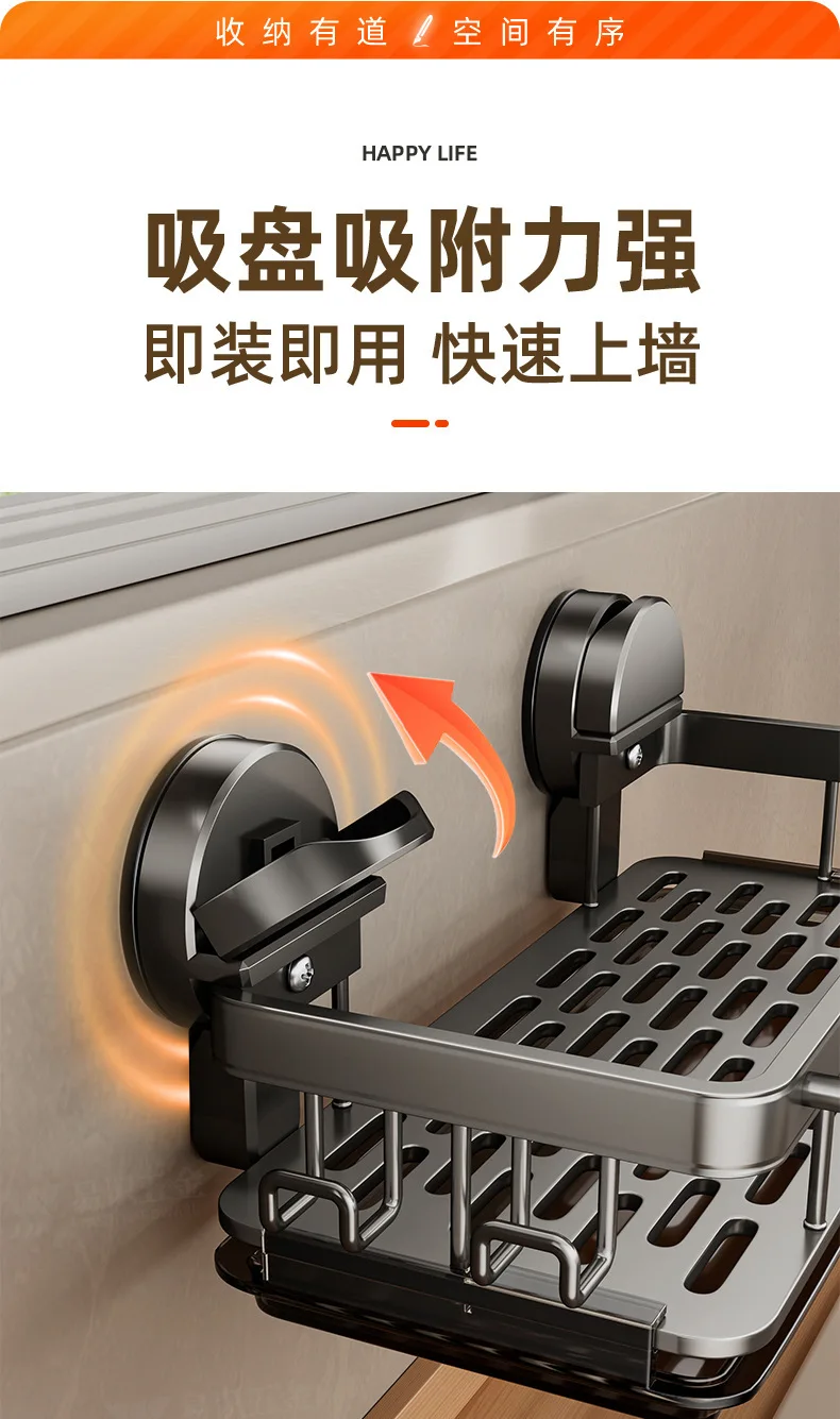 2 reviews for YM No-Drill Kitchen Sink Storage Rack Suction Cup Cloth Draining Rack Multifunctional Wall-Mounted Sink Shelf for Utensils Dishe