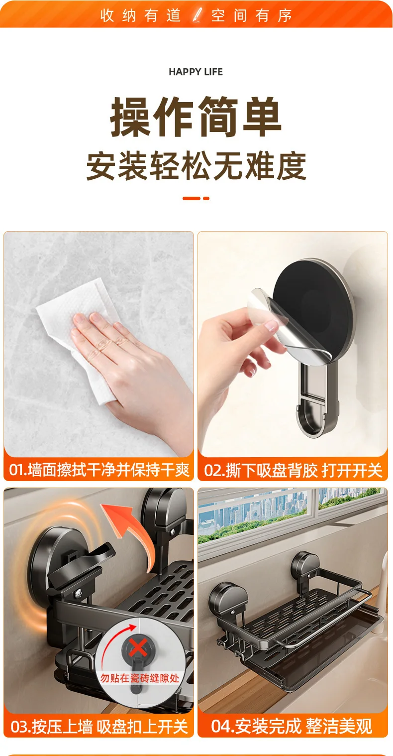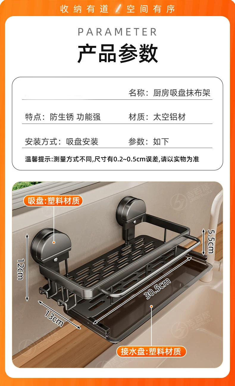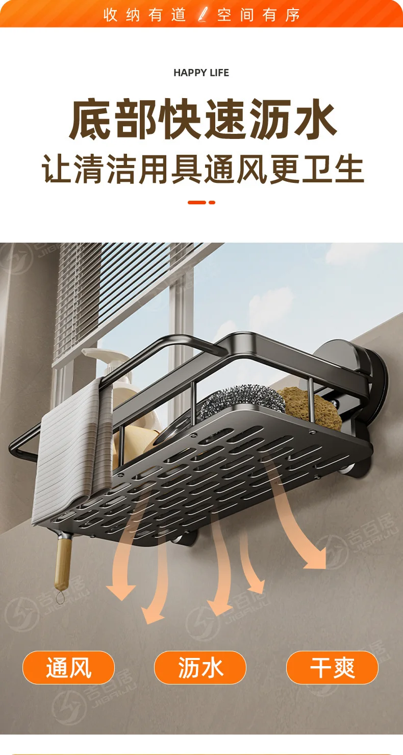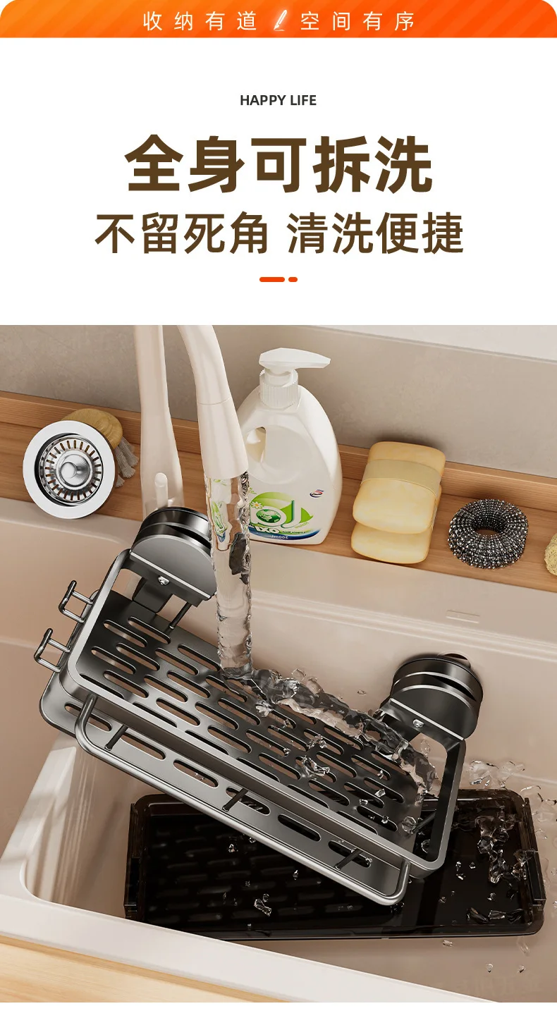 2 reviews for YM No-Drill Kitchen Sink Storage Rack Suction Cup Cloth Draining Rack Multifunctional Wall-Mounted Sink Shelf for Utensils Dishe