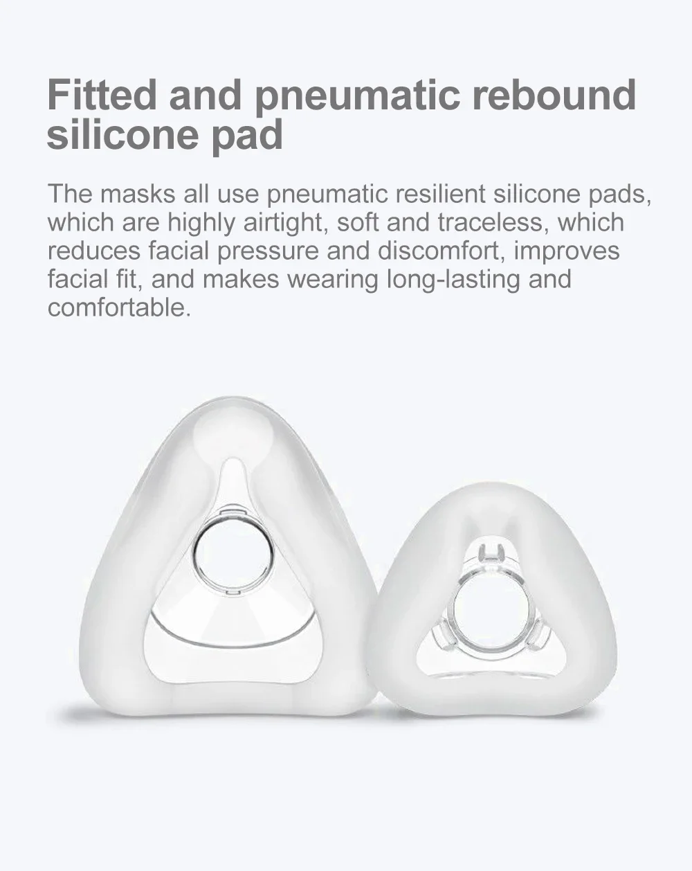 The masks all use pneumatic resilient silicone pads, which are highly airtight, soft and traceless, which reduces facial pressure and discomfort, improves facial fit, and makes wearing long-lasting and comfortable.