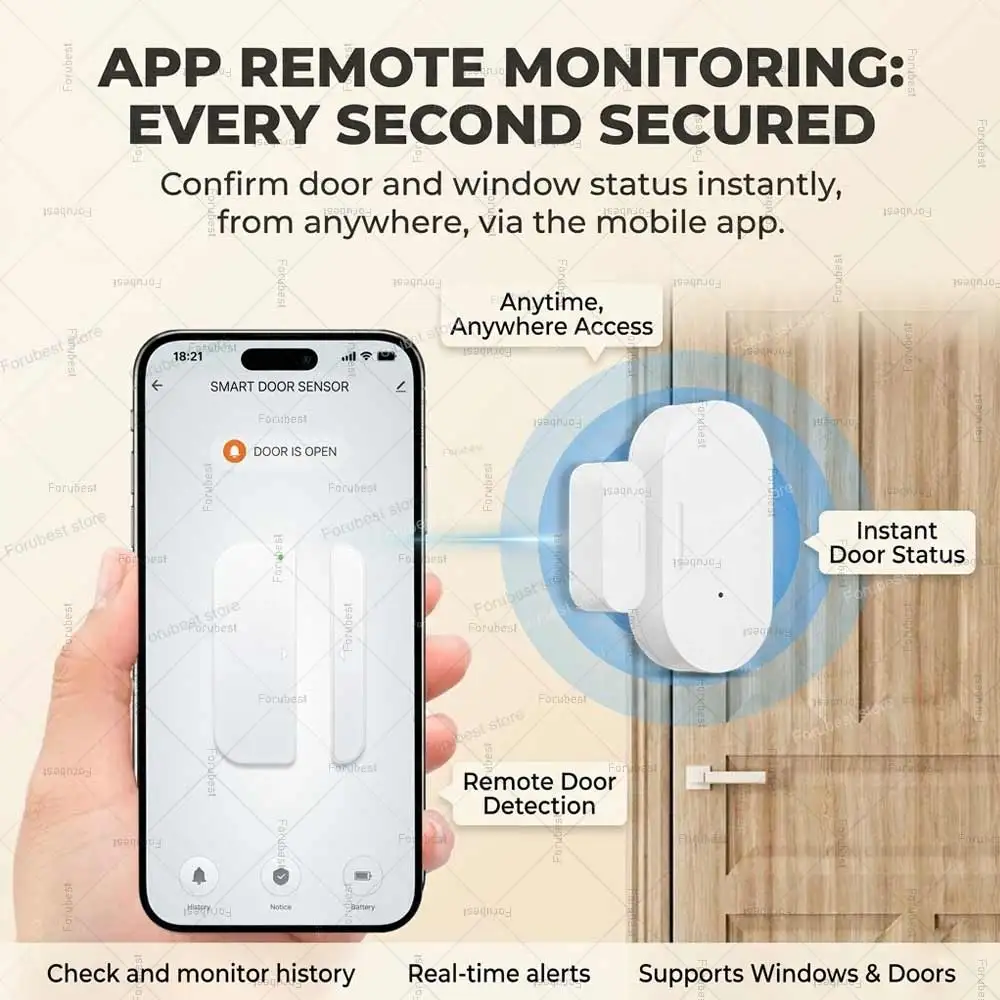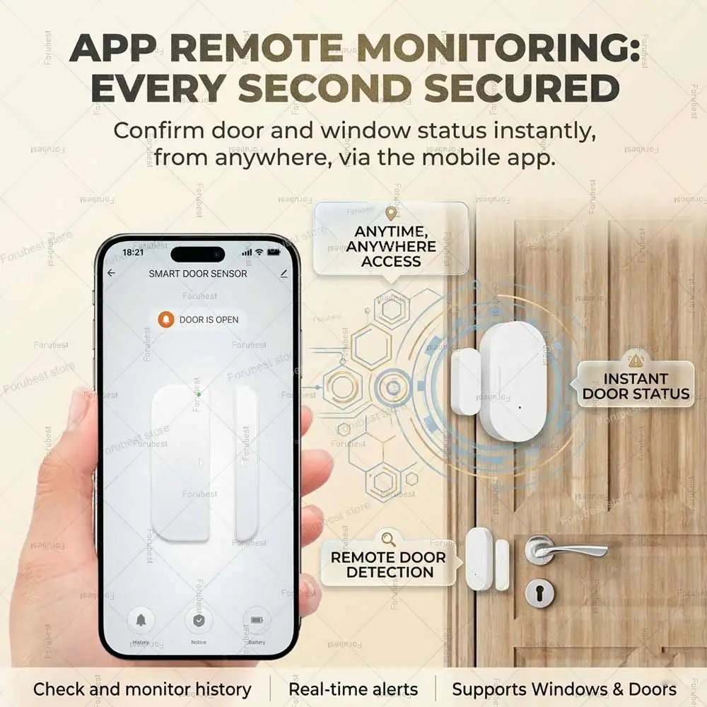-Real-Time Alerts:Sends instant notifications to your smartphone when a door or window is opened.
