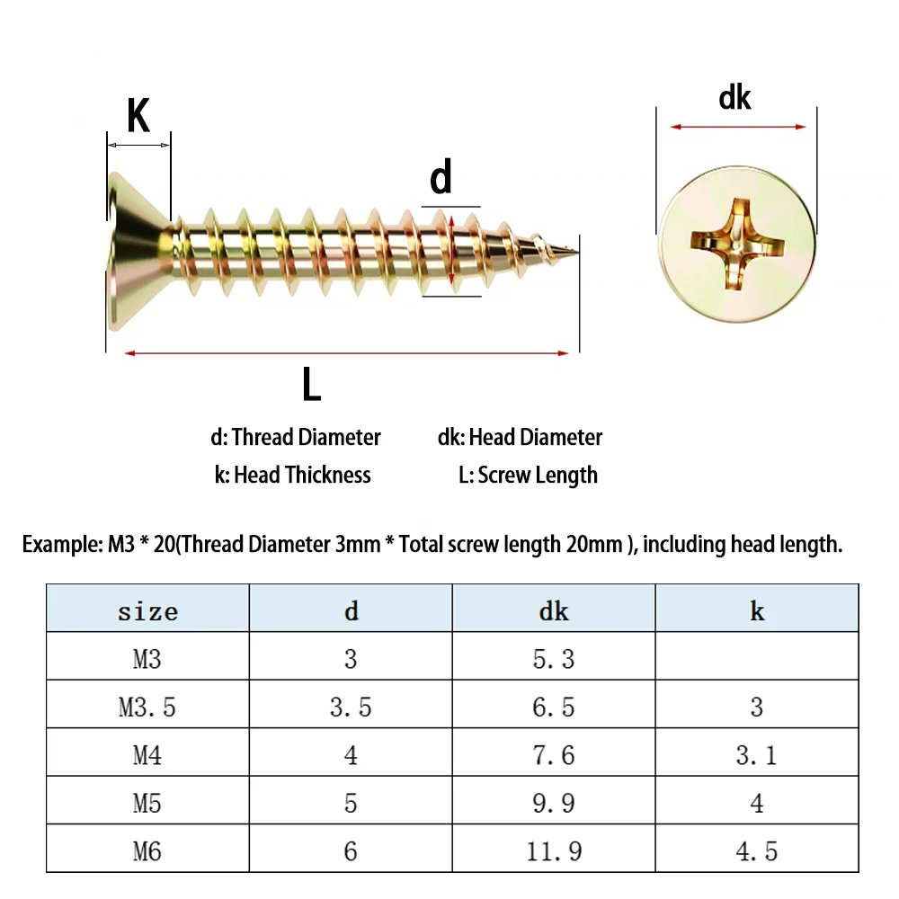Zinc Cross Fiberboard Screws M3 M3.5 M4 M5 M6 Countersunk Phillips Flat Head Drywall Self Tapping Chipboard Screw Wood Screws