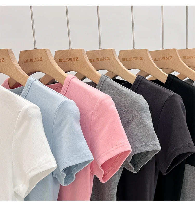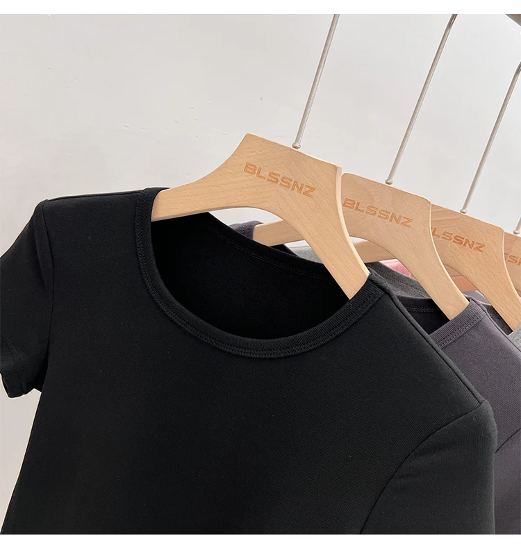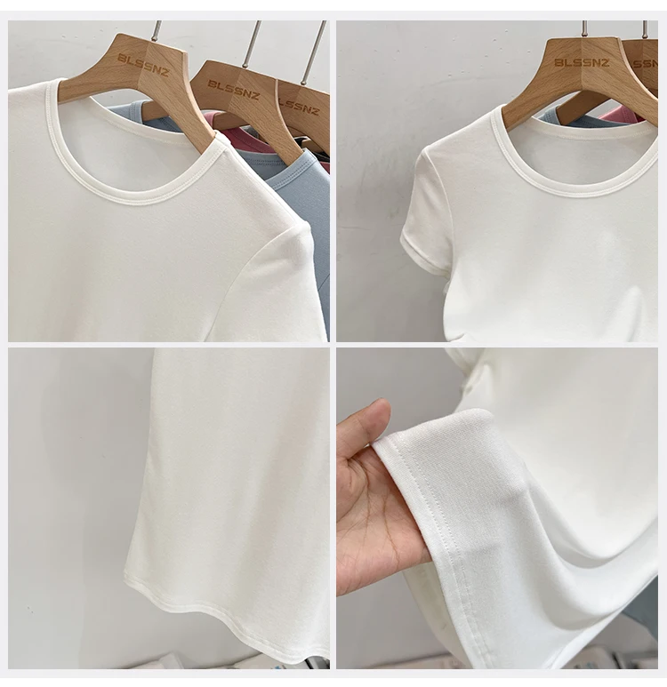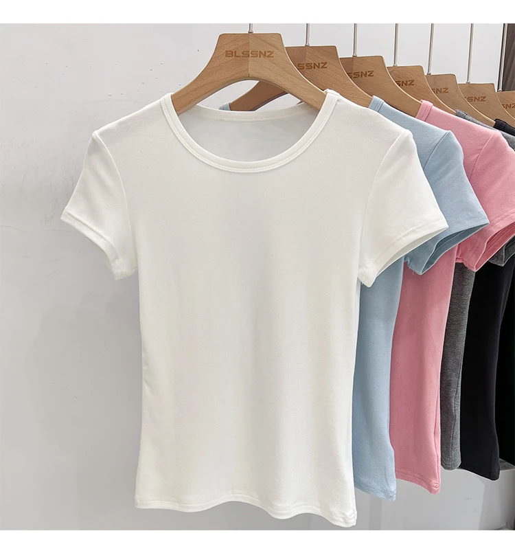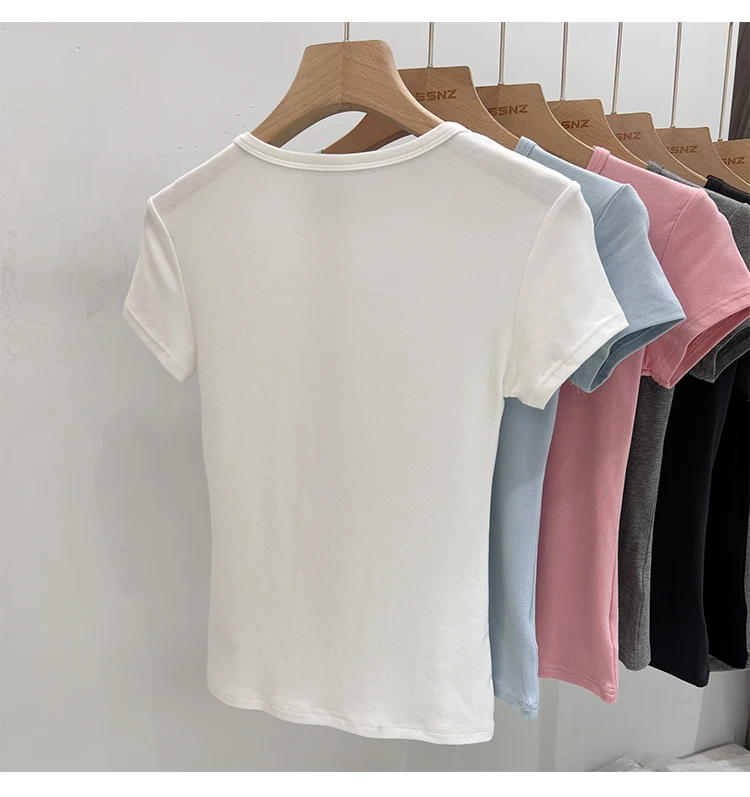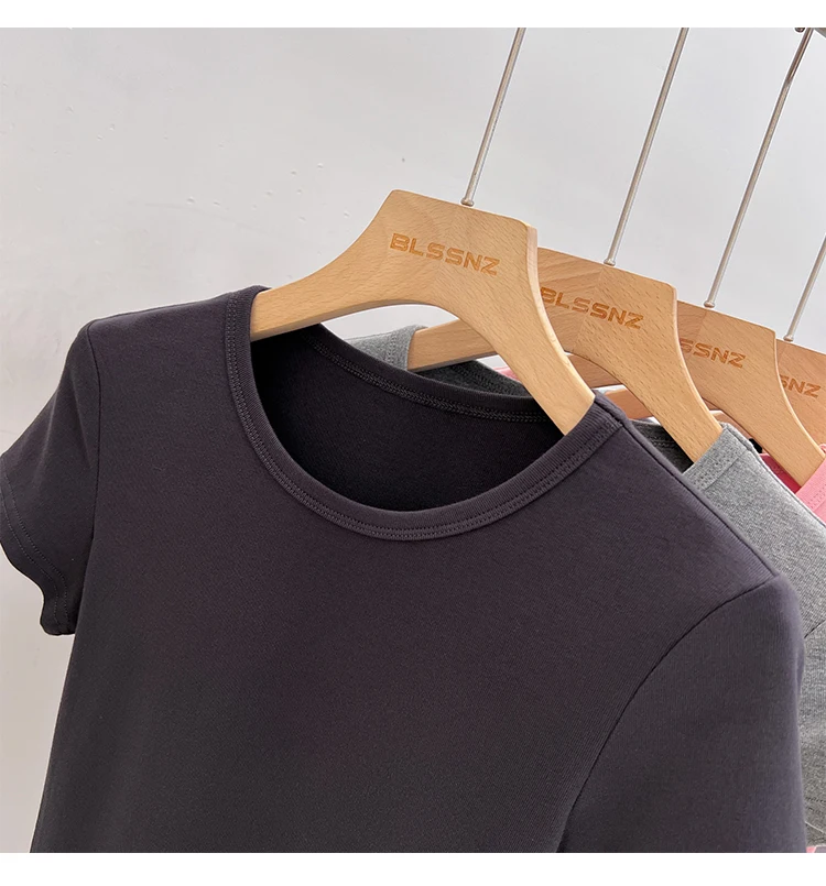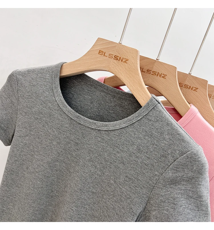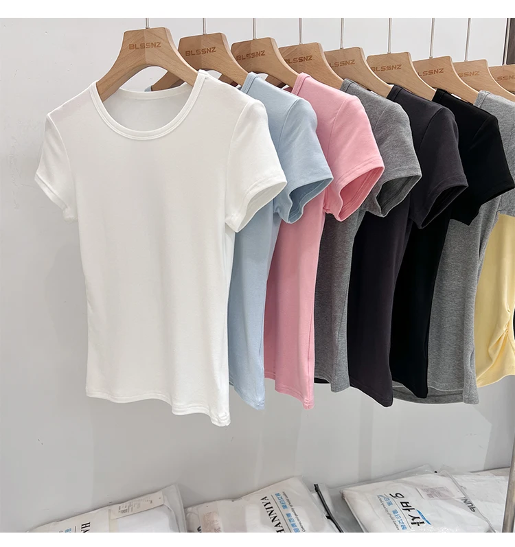Zjaiss 2026 Summer Slim Fit Cotton Top Women’s Trendy O-Neck Short Sleeve Women T-Shirt Korean Style Solid Color Versatile Tee